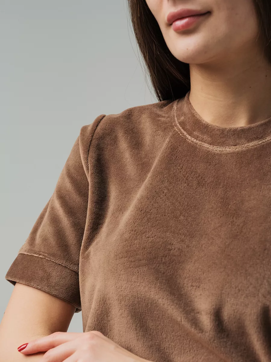 Велюровая кофта с коротким рукавом-отличный выбор для тех кто ищет комфортную и удобную одежду для повседневного использования. Футболка не сковывает движений, прекрасно сидит на любой фигуре, подойдет для подростков, девушек и женщин всех возрастов. Футболка пошита из качественного хлопкового велюра(производство Турция). Преимущества велюра из натурального хлопка: сохраняют тепло, тело в нем свободно дышит, мягкий и приятный к телу и на ощупь. Не теряют форму после многочисленных стирок. Универсальная велюровая футболка подойдет для занятий спортом, прогулок, на тренажеры и фитнес, похода в магазин, как домашняя одежда для дома. В ней будет уютно и комфортно. Кофта велюровая с коротким рукавом представлена в больших размерах и подойдет для беременных. Также в ней можно выполнять повседневные дела.