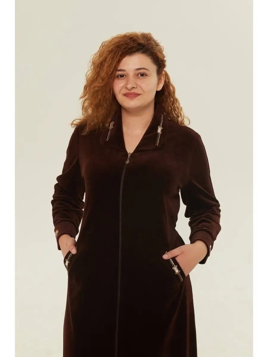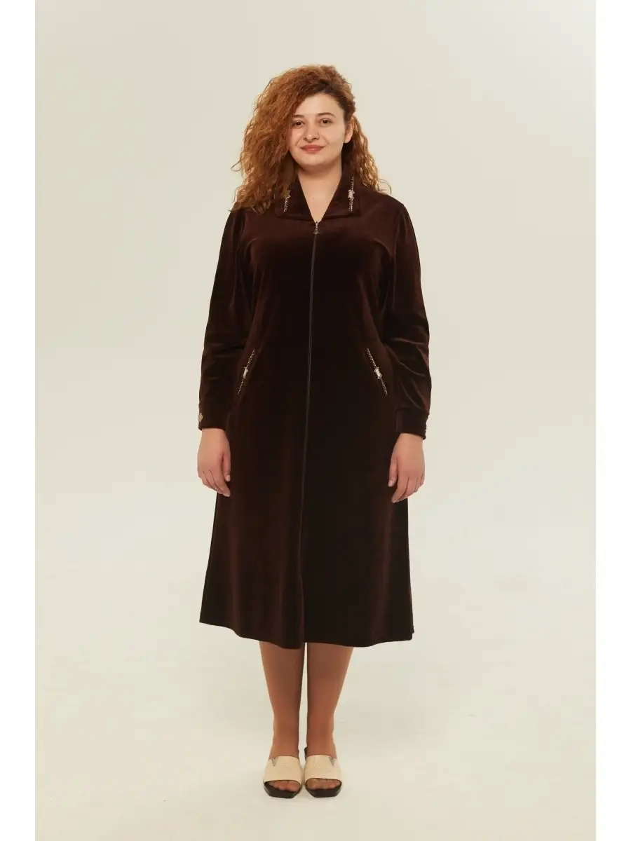 халат женский велюровый на молнии-1 шт