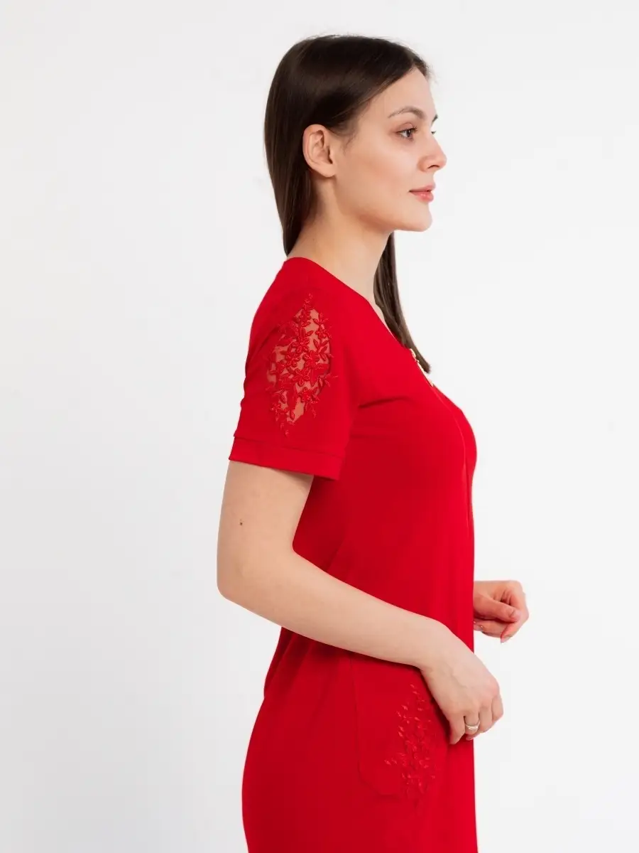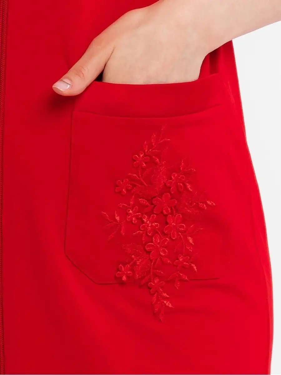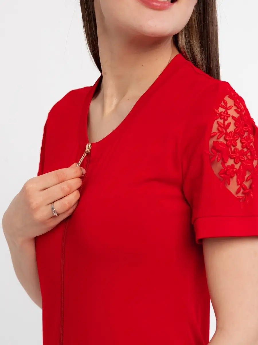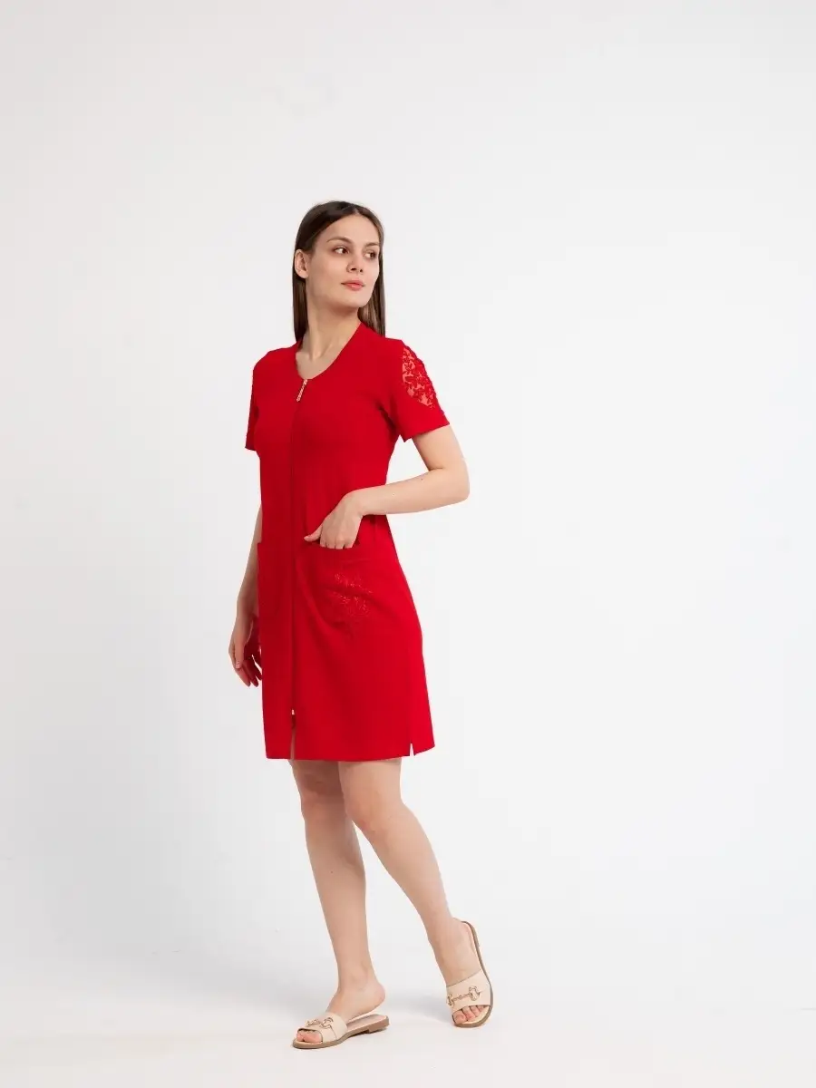 Качественный домашний женский халат из высококачественного трикотажа. Модный халат на молнии, который будет не только удобным, но и стильным предметом домашнего обихода. Оригинальный дизайн средней длины с круглым вырезом, глубокими накладными карманами и короткими рукавами. Красивое домашнее платье сделает ваш образ элегантным и нарядным. Удачная модель красивого халата позволит вам расслабиться и выглядеть великолепно после трудного дня. Домашний халат молодежный женский, домашняя женская одежда, халат для дома может послужить прекрасным подарком для мамы, жены, сестры, подруги на 8 марта, день рождения. Рекомендуется стирать в стиральной машине или вручную при температуре 30 С.