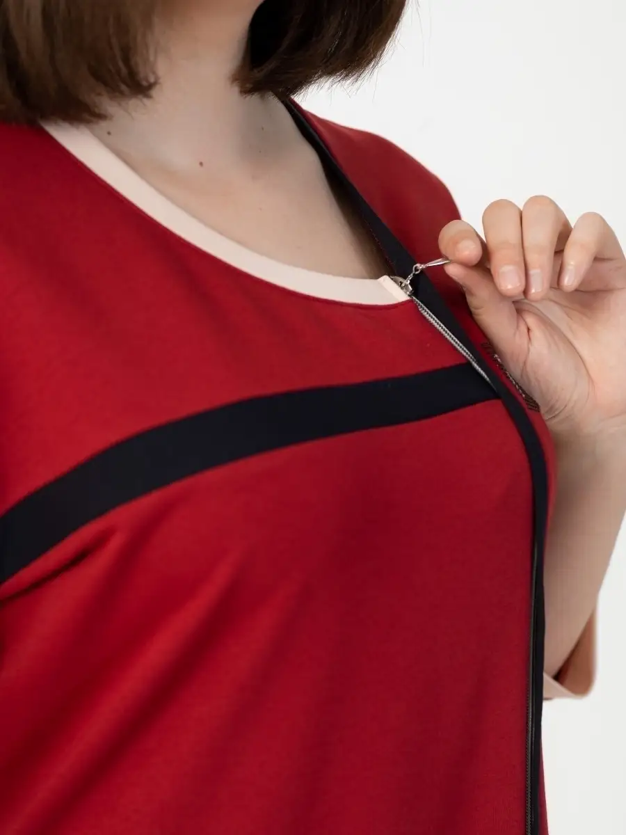 Женский домашний халат из трикотажного полотна высокого качества. Нежная уютная модель на молнии больших размеров с рукавами 3/4 и глубоким боковым карманом, для повседневного комфорта. Данная модель халата подойдет девушкам и женщинам любого возраста. Ассиметричный вырез горловины и скрытая молния придают халату необычный вид, смотрится как элегантное домашнее плате. Ткань не линяет и не деформируется. Идеальный вариант подарка маме, сестре, подруге, родным и близким на день рождения или любой праздник. Халаты больших размеров. При соблюдении всех рекомендации по уходу и эксплуатации будете носить с удовольствием очень долго.