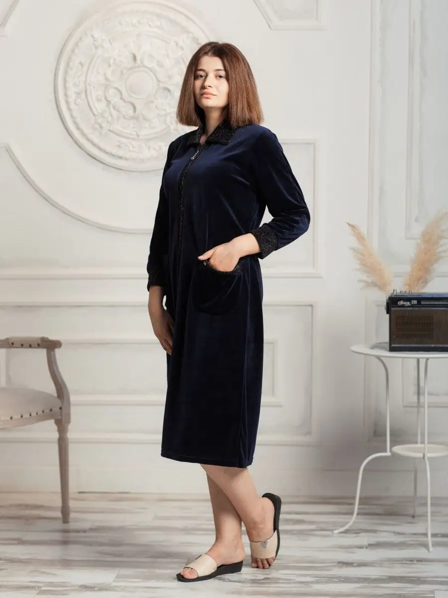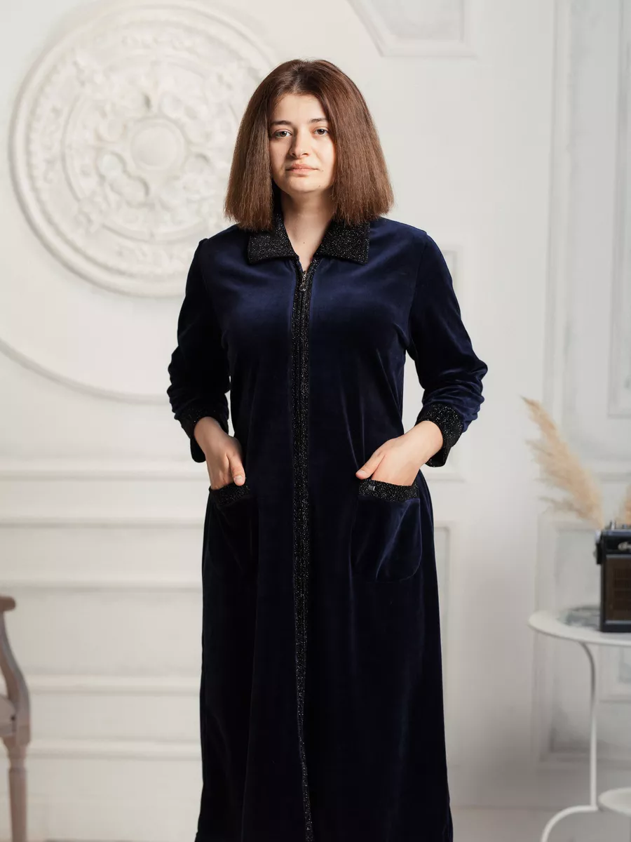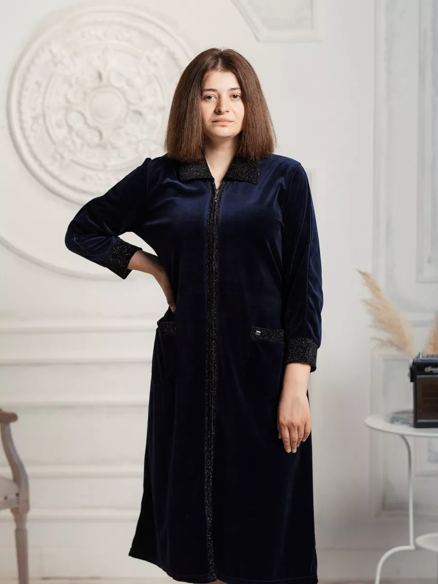 Халат женский велюровый длинный на молнии для высоких женщин и девушек. Велюр из которого пошит женский халат, высокого качества, стойкий к изнашиванию, не линяет во время стирки. Большое содержание хлопка в составе ткани позволяет комфортно носить и чувствовать себя в нем уютно. Халат женский домашний на замке - один из самых практичных вариантов. Кроме того с помощью молнии можно регулировать вырез халата. Размерная сетка включает в себя большие размеры. Рекомендуется стирать в стиральной машине или вручную при температуре не выше 30 С. При соблюдении всех рекомендаций по уходу и эксплуатации будете носить с удовольствием очень долго.