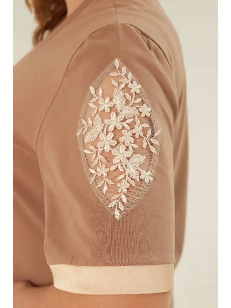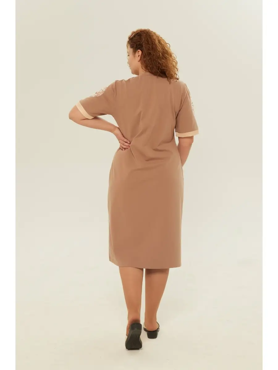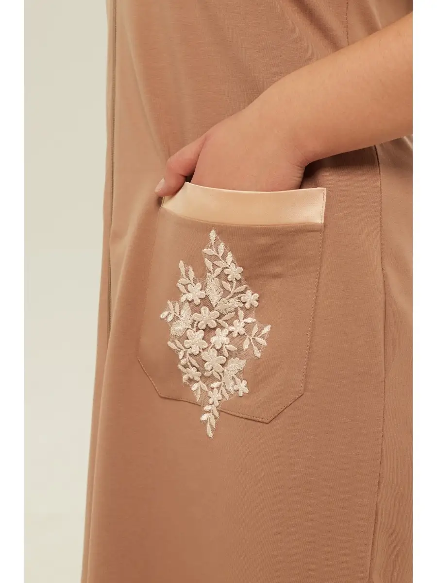 Домашний халат женский больших размеров из трикотажного полотна высокого качества. Красивый и практичный домашний халат на молнии с круглым вырезом, короткими рукавами и глубокими накладными карманами. Халат кружевной позволит выглядеть ярко и красиво дома или на даче. Гипюр с цветочками на рукавах и карманах украшают халат и придают женственность. Халат послужит прекрасным подарком маме, сестре, подруге, родным и близким. Может понравиться тем, кто кто ищет красивую одежду для дома, домашнюю качественную одежду. Большая размерная сетка включает в себя размеры с 50 по 60. При соблюдении рекомендаций по уходу и эксплуатации будете носить с удовольствием очень долго.