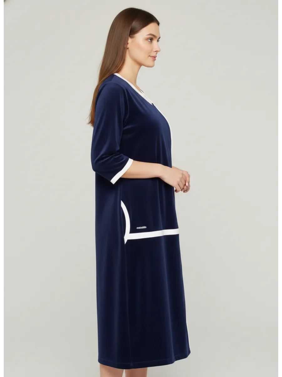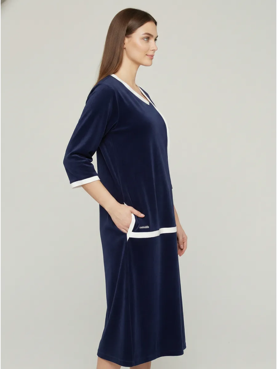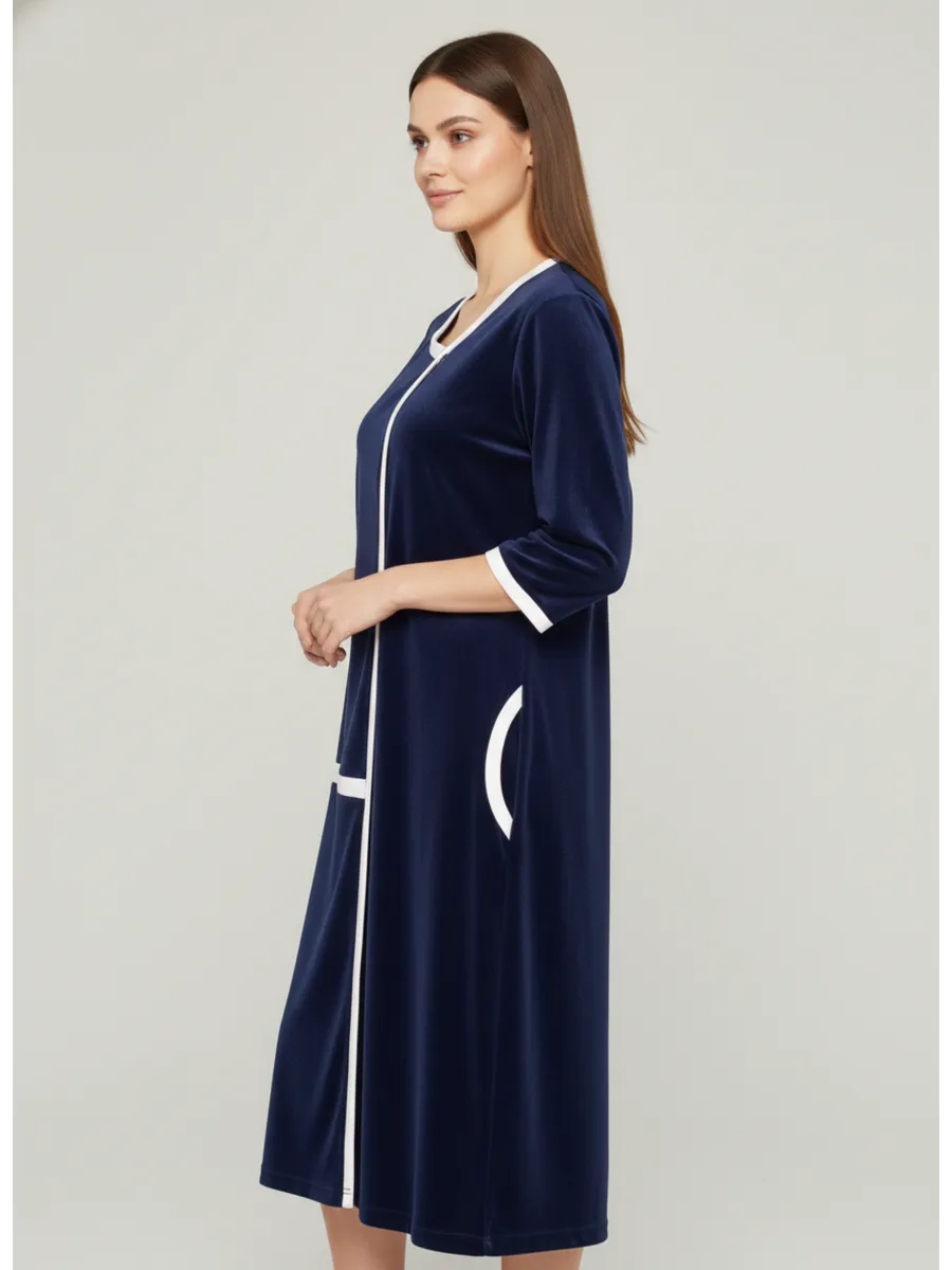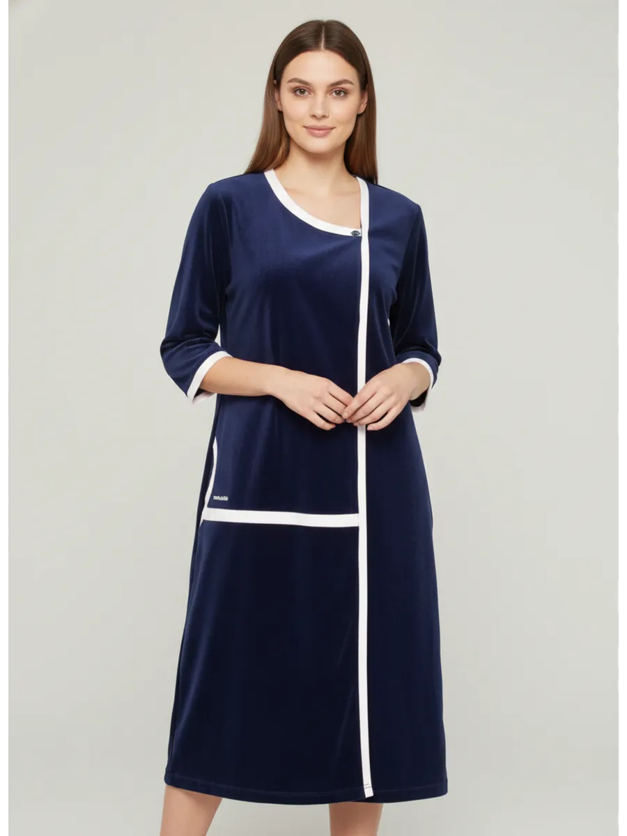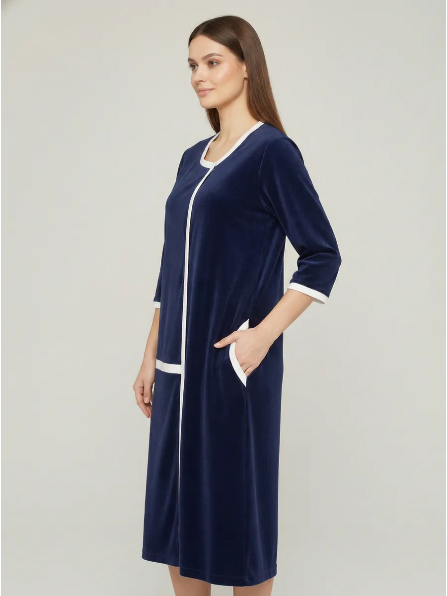 Особенность модели – замок и большие карманы, которые обеспечивают удобство и функциональность, а также возможность хранить мелочи под рукой. Молния прикрыта планкой и халат выглядит как платье. Халат подойдет для кормящих женщин и беременных, обеспечивая комфорт и легкость в использовании. Халат сшит из велюра высшего сорта производства Турция, с высоким содержанием хлопка, стойкий к износу, не линяет. Изделие сочетает в себе долговечность и стиль, соответствующий самым популярным трендам 2025 и 2026 годов.