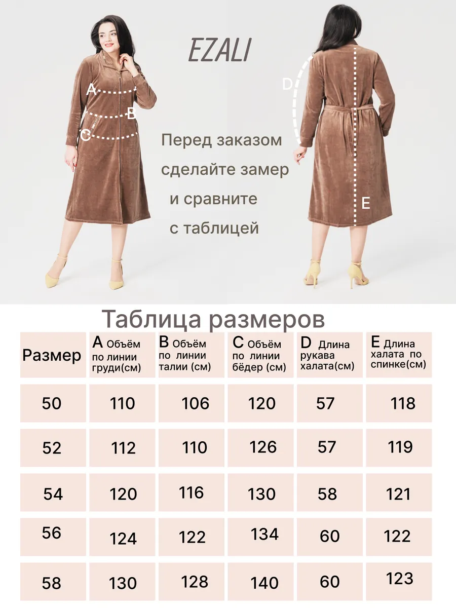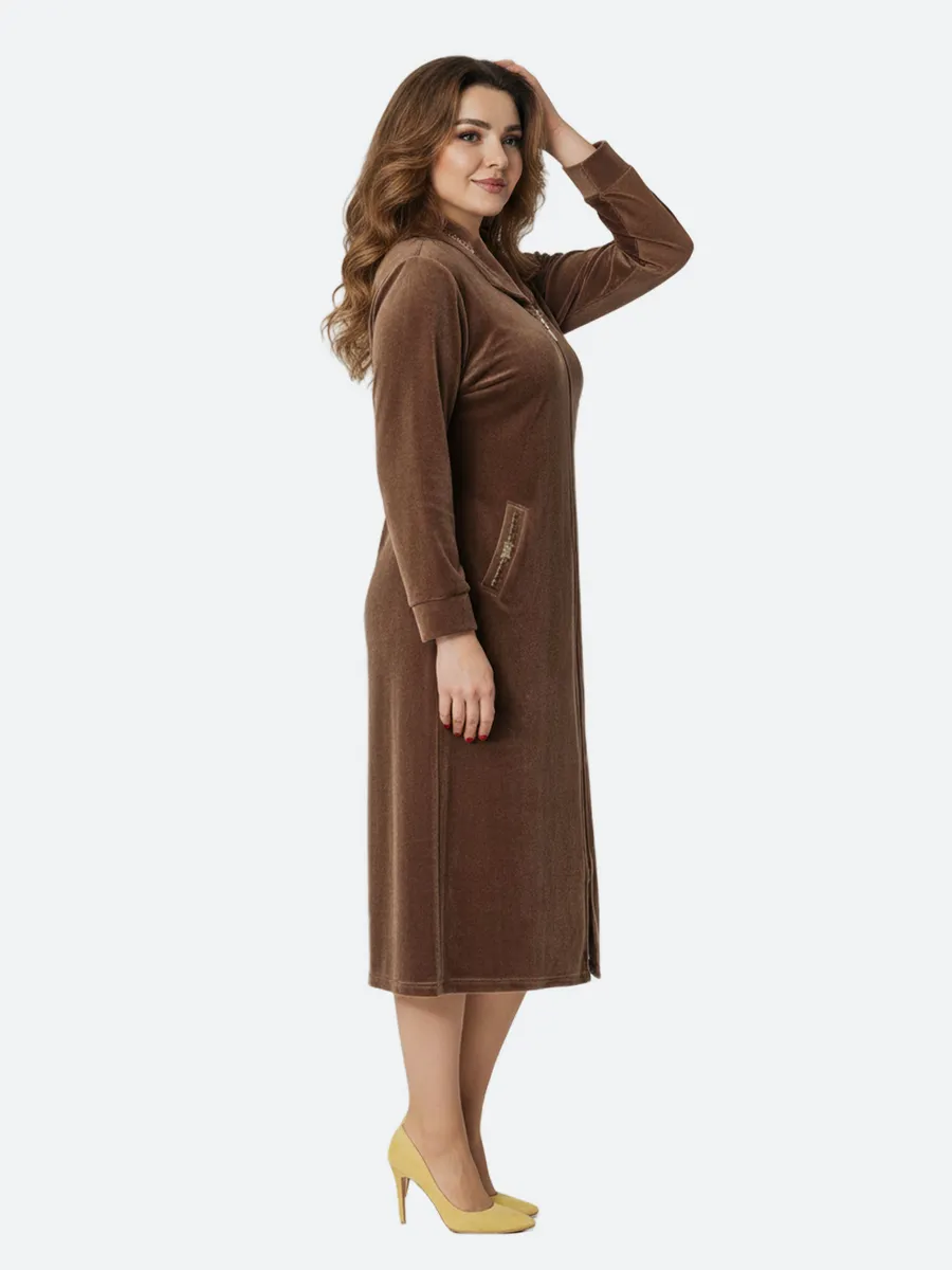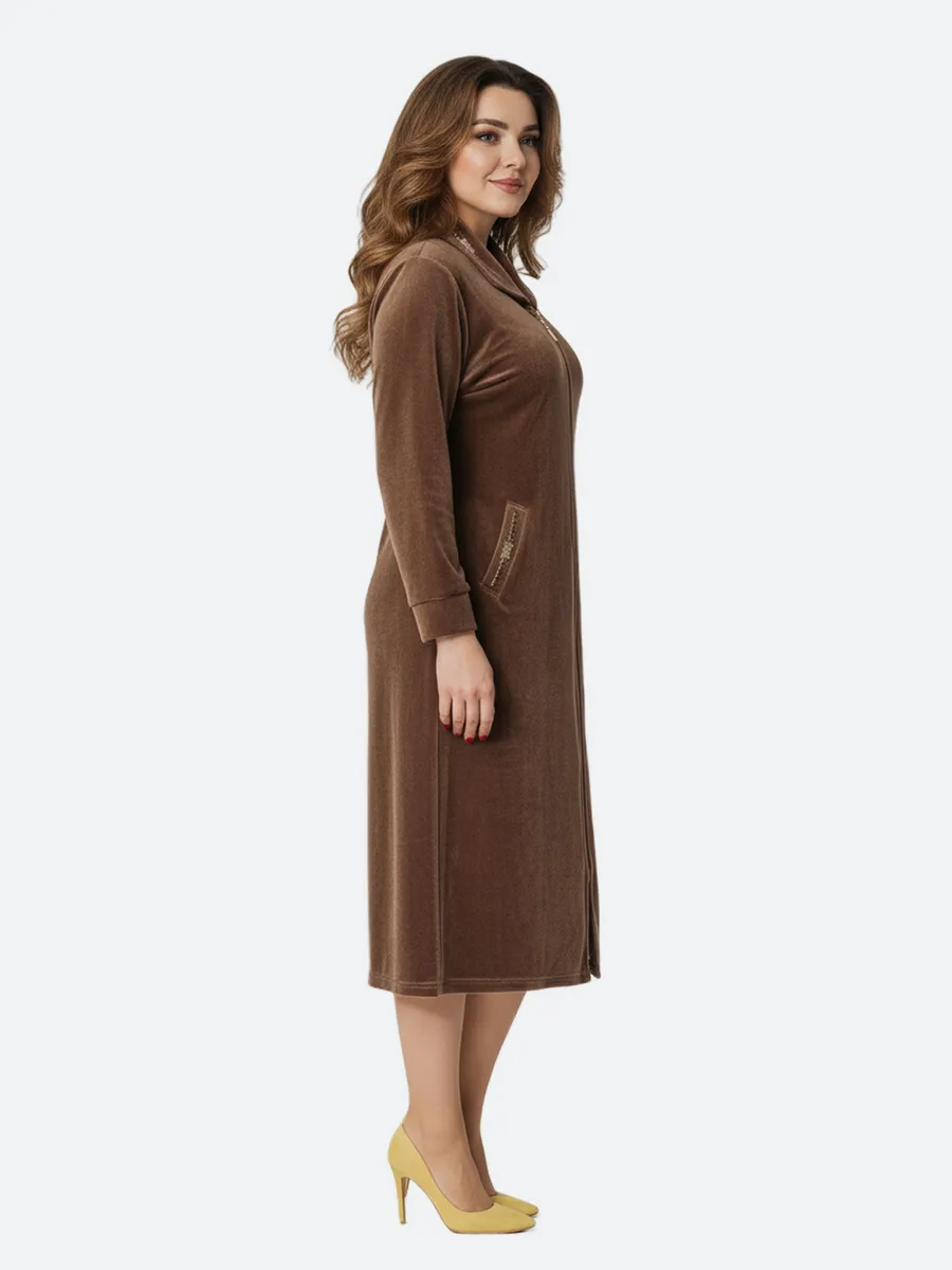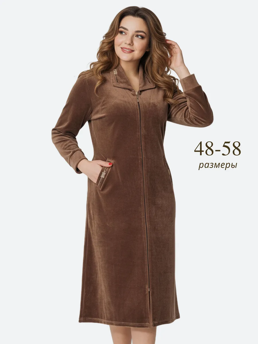 Халат женский домашний на молнии-это прекрасный выбор для тех, кто ищет комфортную и удобную одежду для дома. Халат велюровый представлен в больших размерах, пошит из качественного хлопкового велюра(производство Турция). Преимущества велюра из натурального хлопка: сохраняют тепло, тело в нем свободно дышит, мягкий и приятный к телу и на ощупь. Не теряют форму после многочисленных стирок. Велюровый женский халат с длинным рукавом и воротником подойдет женщинам всех возрастов. Халат длинный на замке может стать прекрасным подарком маме, тете, бабушке. Качественный, дышащий состав изделия позволяет комфортно носить его долгое время. Халат рекомендуется стирать в стиральной машине или вручную при температуре не выше 30 С. При соблюдении всех рекомендаций по уходу и эксплуатации будете носить с удовольствием очень долго.