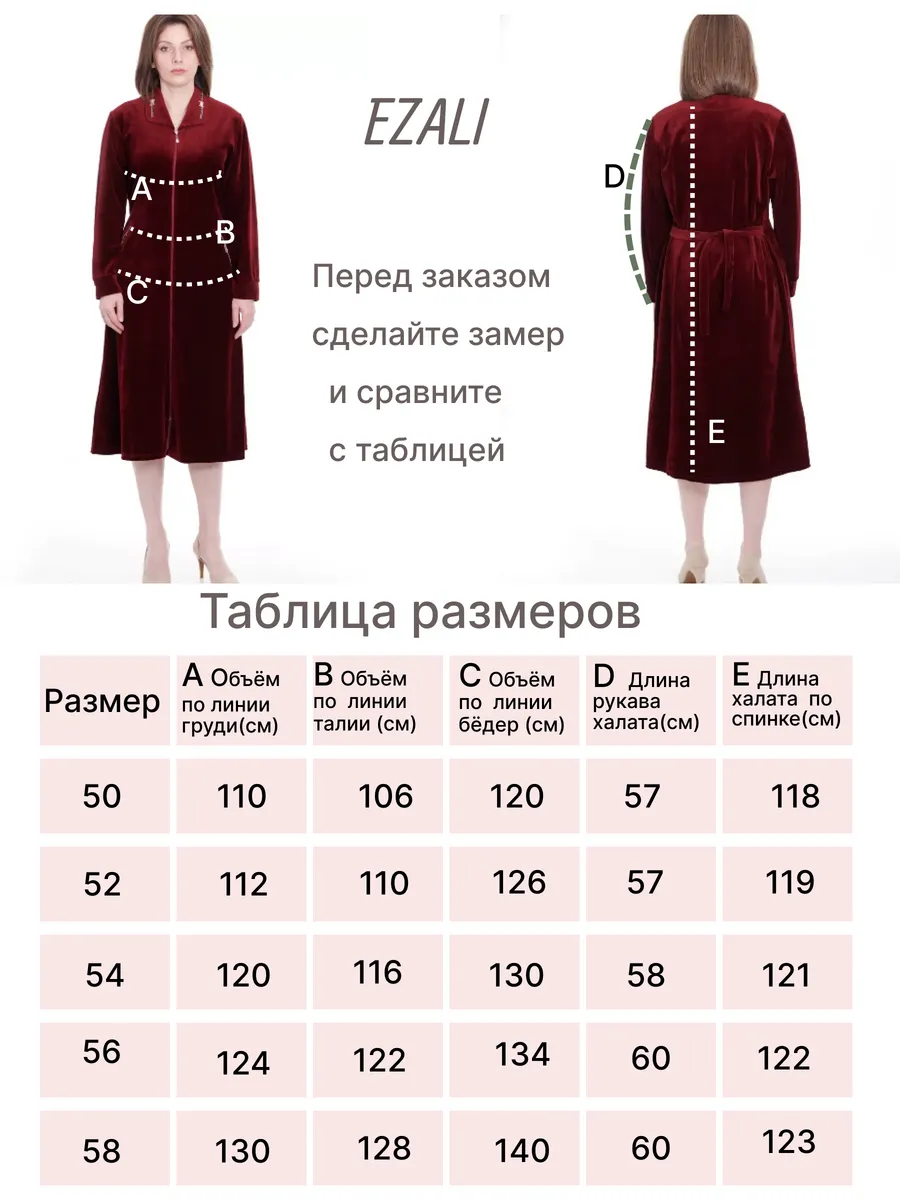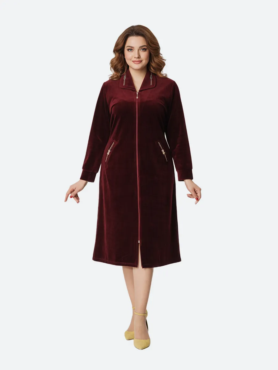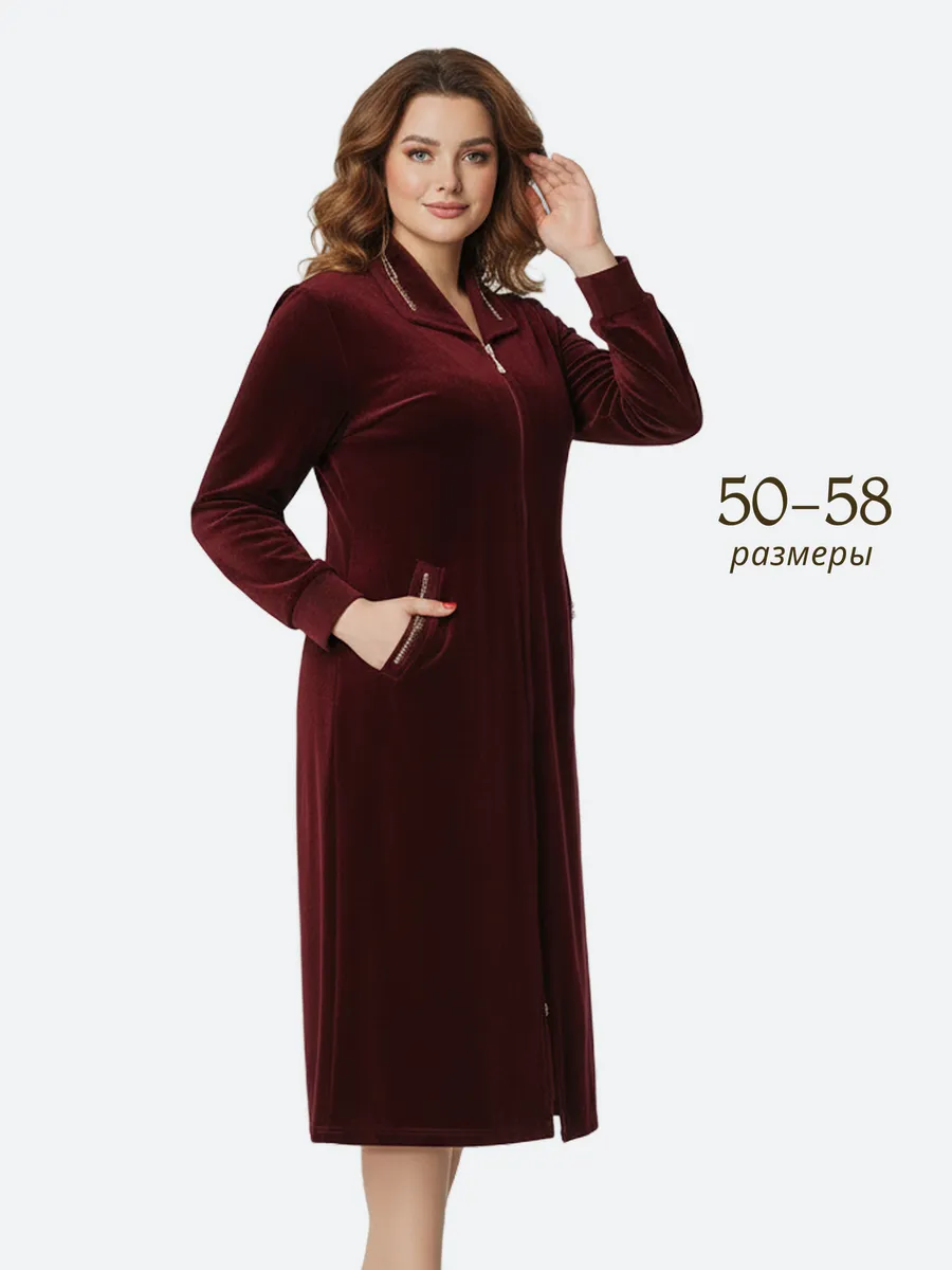 Халат женский домашний на молнии-это прекрасный выбор для тех, кто ищет комфортную и удобную одежду для дома. Халат велюровый представлен в больших размерах, пошит из качественного хлопкового велюра(производство Турция). Преимущества велюра из натурального хлопка: сохраняют тепло, тело в нем свободно дышит, мягкий и приятный к телу и на ощупь. Не теряют форму после многочисленных стирок. Велюровый женский халат с длинным рукавом и воротником подойдет женщинам всех возрастов. Халат длинный на замке может стать прекрасным подарком на 8 марта, день рождения или любой другой праздник маме, тете, бабушке. Качественный, дышащий состав изделия позволяет комфортно носить его долгое время. Наши халаты выбирают те, кто ищут домашний халат, халат для дома и дачи, халат хлопок велюр на молнии. Халат женский теплый рекомендуется стирать в стиральной машине или вручную при температуре не выше 30 С. При соблюдении всех рекомендаций по уходу и эксплуатации будете носить с удовольствием очень долго.