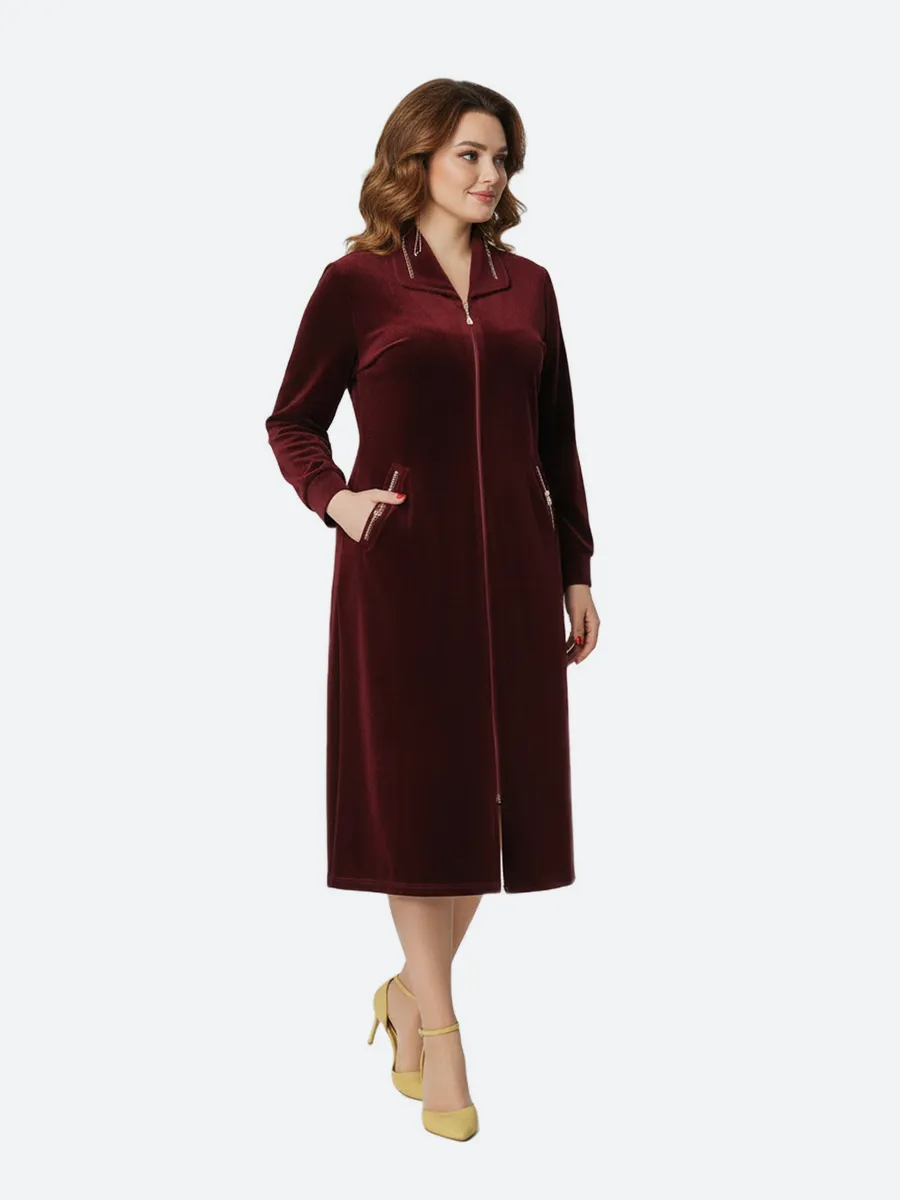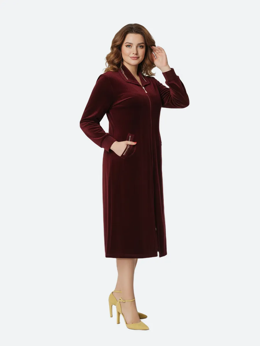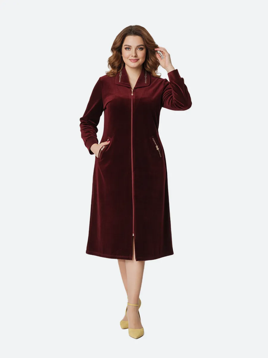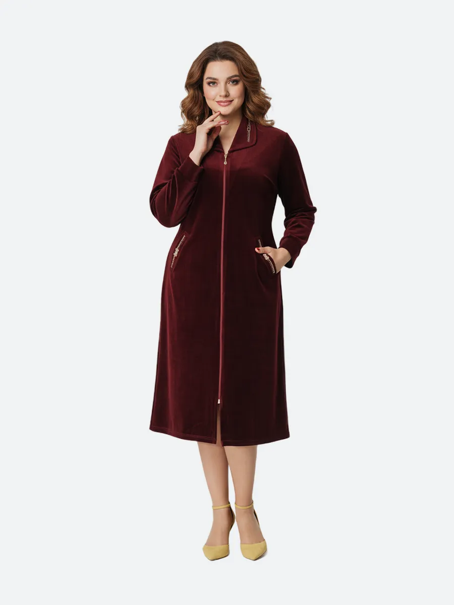 Халат женский домашний на молнии-это прекрасный выбор для тех, кто ищет комфортную и удобную одежду для дома. Халат велюровый представлен в больших размерах, пошит из качественного хлопкового велюра(производство Турция). Преимущества велюра из натурального хлопка: сохраняют тепло, тело в нем свободно дышит, мягкий и приятный к телу и на ощупь. Не теряют форму после многочисленных стирок. Велюровый женский халат с длинным рукавом и воротником подойдет женщинам всех возрастов. Халат длинный на замке может стать прекрасным подарком на 8 марта, день рождения или любой другой праздник маме, тете, бабушке. Качественный, дышащий состав изделия позволяет комфортно носить его долгое время. Наши халаты выбирают те, кто ищут домашний халат, халат для дома и дачи, халат хлопок велюр на молнии. Халат женский теплый рекомендуется стирать в стиральной машине или вручную при температуре не выше 30 С. При соблюдении всех рекомендаций по уходу и эксплуатации будете носить с удовольствием очень долго.