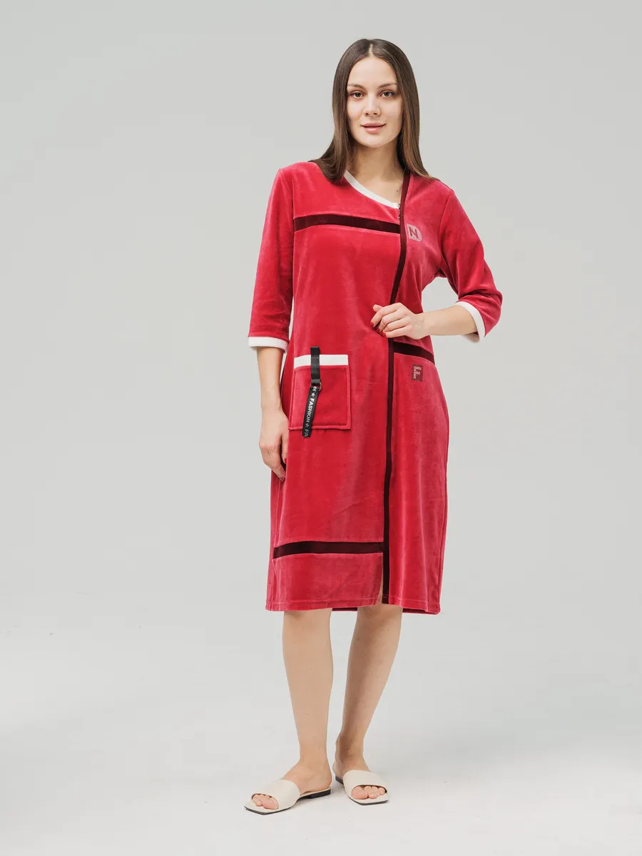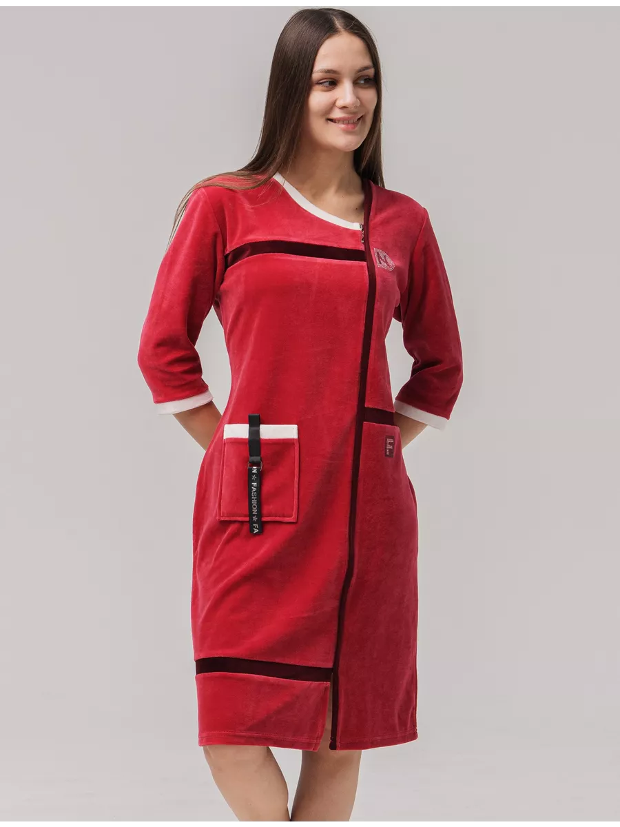 Особенность модели – замок и большие карманы, которые обеспечивают удобство и функциональность, а также возможность хранить мелочи под рукой. Молния прикрыта планкой и халат выглядит как платье. Халат подойдет для кормящих женщин и беременных, обеспечивая комфорт и легкость в использовании. Халат сшит из велюра высшего сорта производства Турция, с высоким содержанием хлопка, стойкий к износу, не линяет. Изделие сочетает в себе долговечность и стиль, соответствующий самым популярным трендам 2025 и 2026 годов.