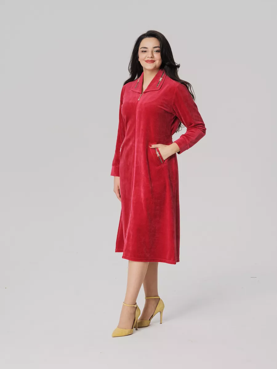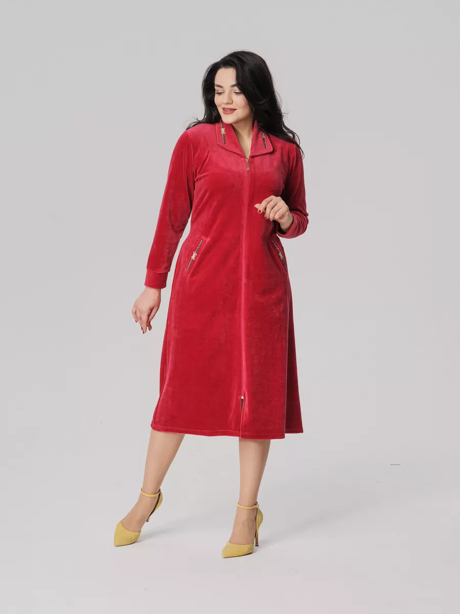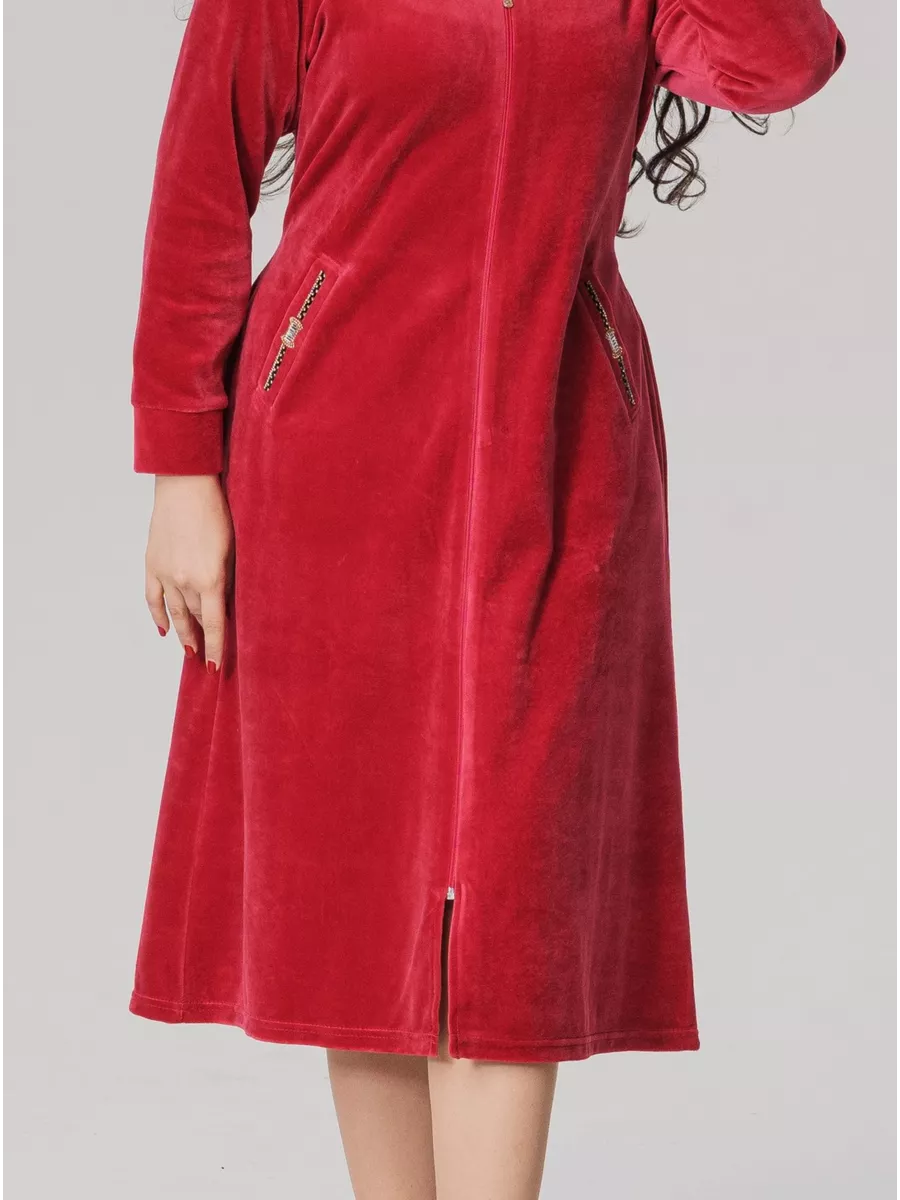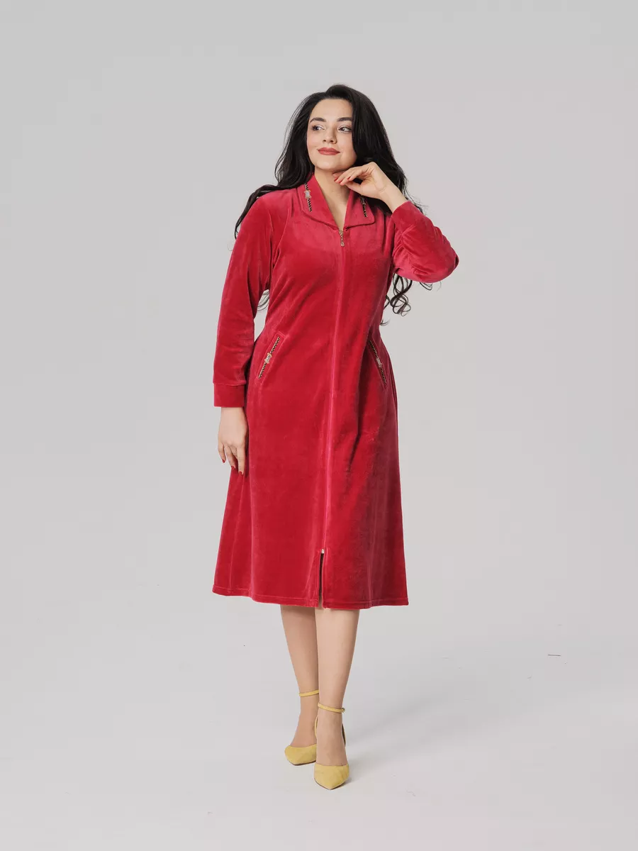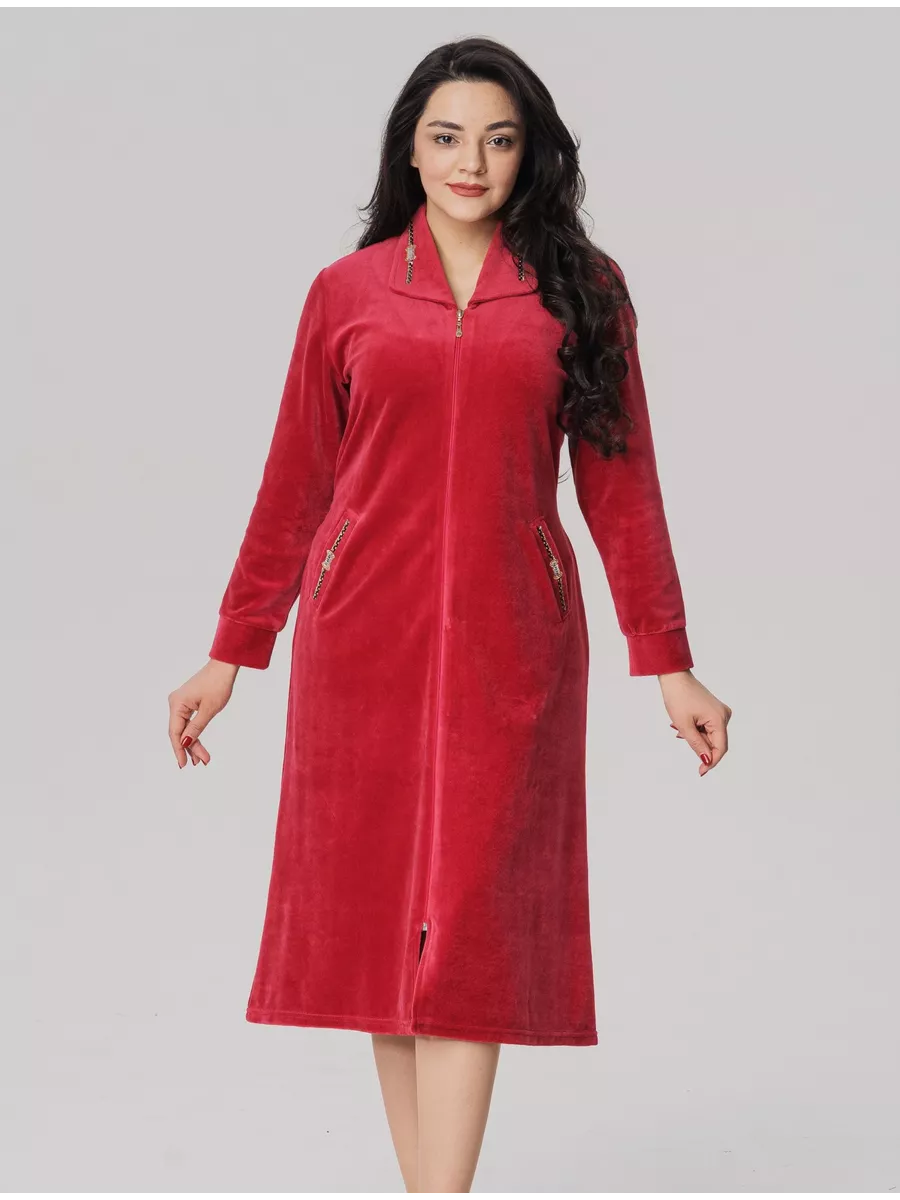 Халат женский домашний на молнии-это прекрасный выбор для тех, кто ищет комфортную и удобную одежду для дома. С нашим женским домашним велюровым халатом вы погрузитесь в атмосферу уюта и комфорта. Этот теплый и стильный халат идеально подойдет для расслабляющих вечеров или утренних часов в домашней обстановке. У нас широкий, размерный ряд от 54 до 60, чтобы каждая женщина могла подобрать свой размер. Модель с молнией облегчит надевание и снимание, делая использование халата еще более удобным. Выполненный из качественного хлопкового велюра(производство Турция), наш халат обеспечит вам мягкость и приятные ощущения на протяжении долгого времени. Халат велюровый представлен в больших размерах. Преимущества велюра из натурального хлопка: сохраняют тепло, тело в нем свободно дышит, мягкий и приятный к телу и на ощупь. Не теряют форму после многочисленных стирок. Велюровый женский халат с длинным рукавом и воротником подойдет женщинам всех возрастов. Халат длинный на замке может стать прекрасным подарком маме, тете, бабушке. Качественный, дышащий состав изделия позволяет комфортно носить его долгое время. Подарите себе или своим близким незабываемые моменты отдыха с нашим женским велюровым халатом. Халат женский теплый рекомендуется стирать в стиральной машине или вручную при температуре не выше 30 С. При соблюдении всех рекомендаций по уходу и эксплуатации будете носить с удовольствием очень долго.