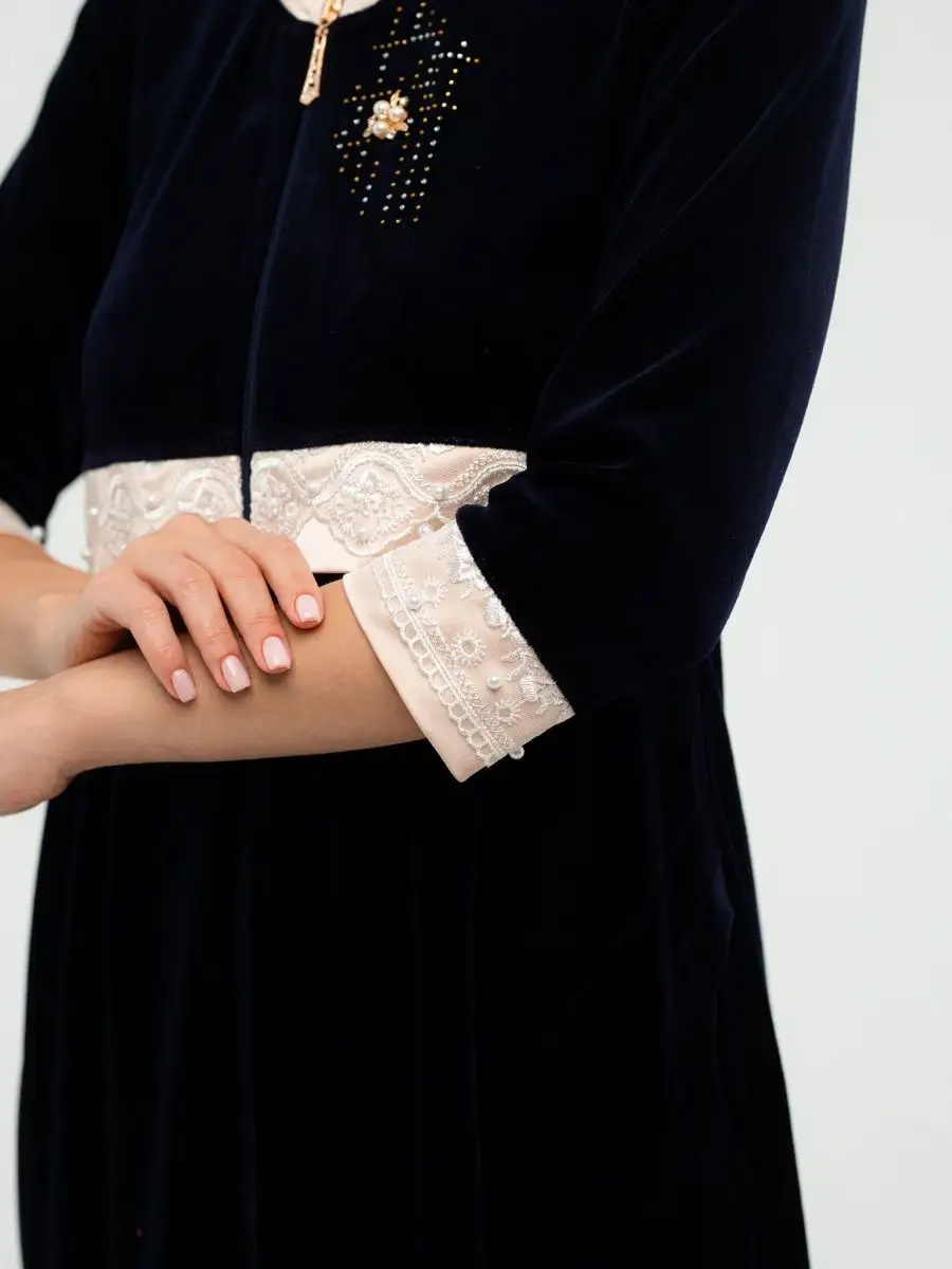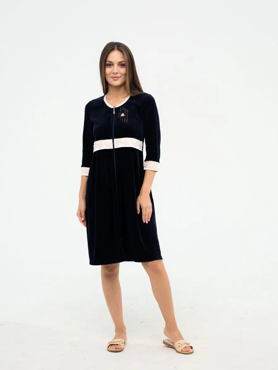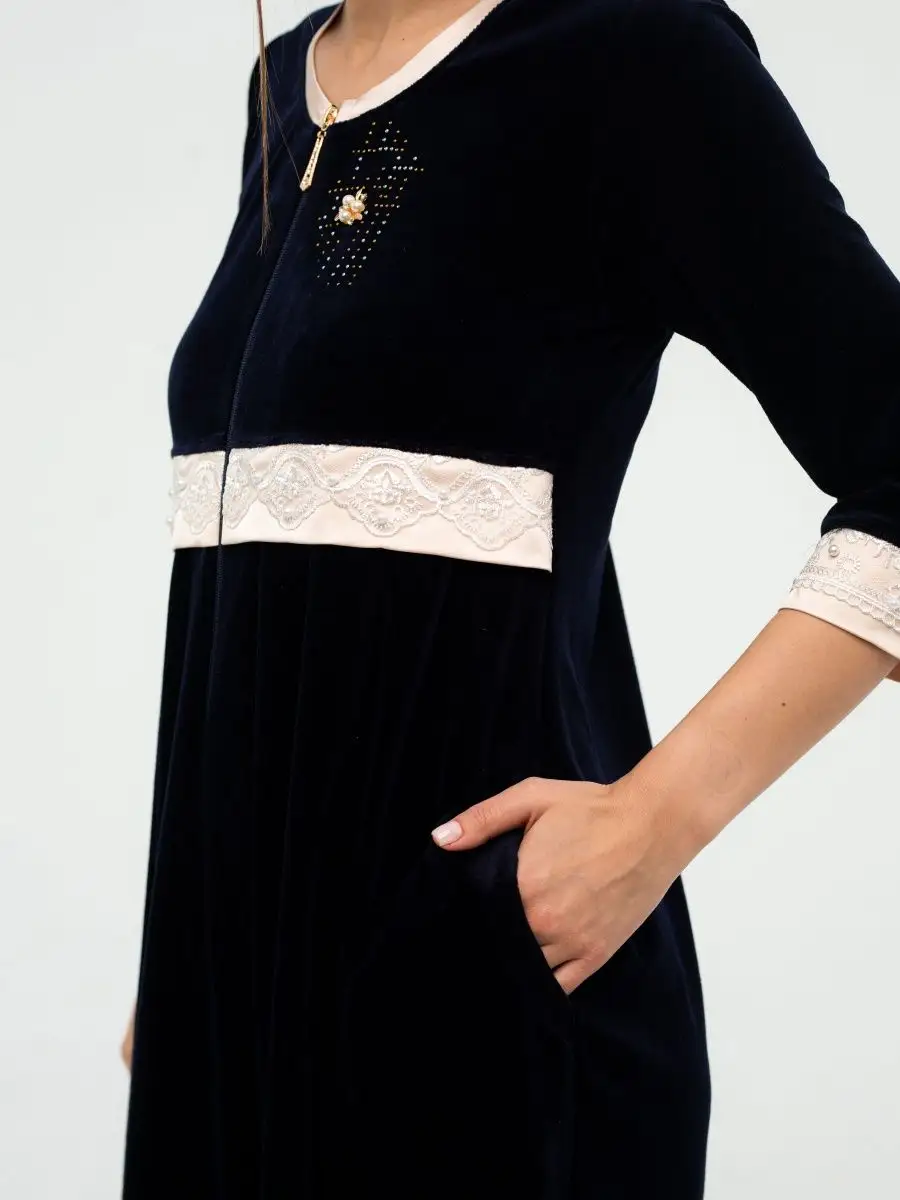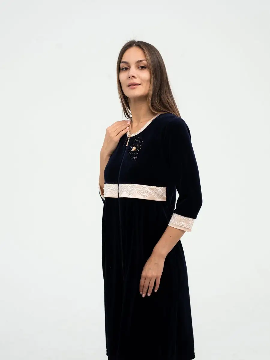 Халат велюровый для беременных, в роддом из натурального мягкого велюра - идеальный как одежда для беременных домашняя. Халат велюровый для беременных и для кормящих мам изготовлен из мягкого качественного велюра от турецких производителей. Домашняя одежда для беременных приятна к телу и не сдавливает увеличивающийся в размерах или уже большой животик. Халат женский для беременных подчеркивает силуэт и дарит максимальный комфорт. Красивый халат с рукавом ¾ позволят девушке даже дома и в больницу выглядеть женственно, гораздо удобнее, чем платье, комбинация и пижама. Домашний халат для род дома, для кормления позволяет будущей маме выглядеть стильно в любом месте.