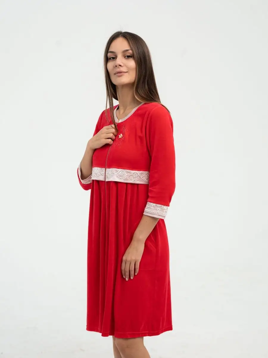 Халат велюровый для беременных, в роддом из натурального мягкого велюра - идеальный как одежда для беременных домашняя. Халат велюровый для беременных и для кормящих мам изготовлен из мягкого качественного велюра от турецких производителей. Домашняя одежда для беременных приятна к телу и не сдавливает увеличивающийся в размерах или уже большой животик. Халат женский для беременных подчеркивает силуэт и дарит максимальный комфорт. Красивый халат с рукавом ¾ позволят девушке даже дома и в больницу выглядеть женственно, гораздо удобнее, чем платье, комбинация и пижама. Домашний халат для род дома, для кормления позволяет будущей маме выглядеть стильно в любом месте.