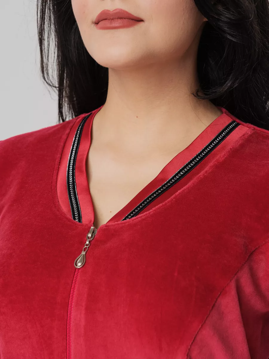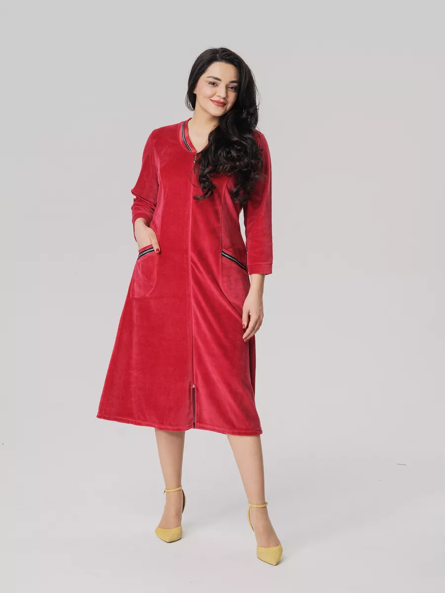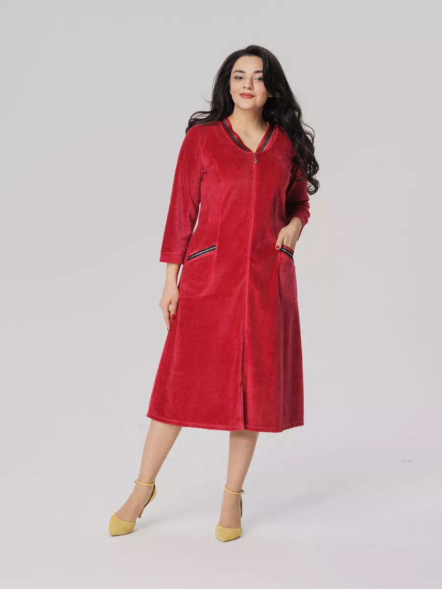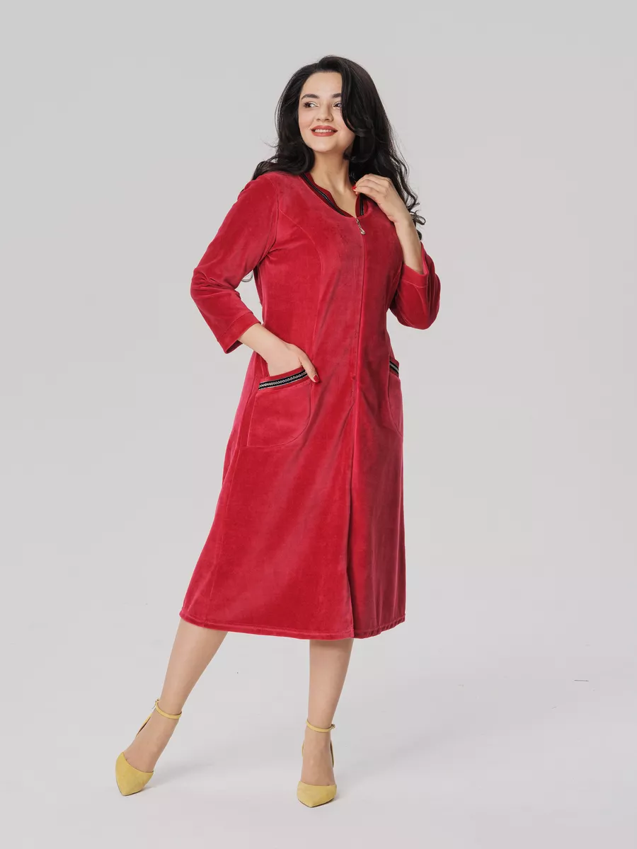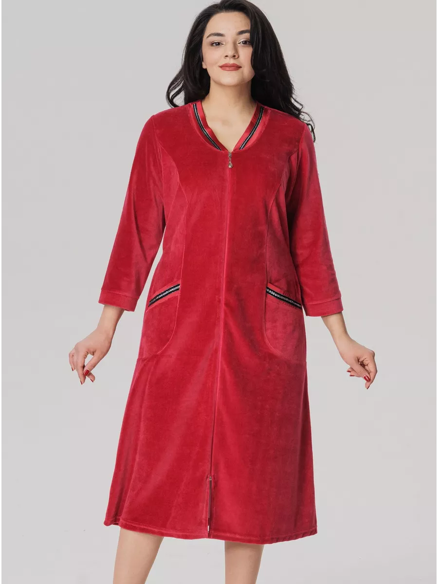 Шикарный велюровый домашний халат больших размеров. Велюр из которого пошит халат, высокого качества, стойкий к изнашиванию, не линяет во время стирки. Классический халат на молнии подходит под любой тип фигуры благодаря идеальным лекалам. Кроме того с помощью молнии можно регулировать вырез халата. В этом велюровом халате приятно будет окунуться в мир спокойствия и домашнего уюта после трудового дня. При этом вы всегда будете выглядеть элегантно и красиво. Наш халат женский домашний подойдет как: одежда для дома, для беременных, халат в роддом, халат теплый на дачу, а также может стать отличным подарком для жены, мамы, сестры, подруги . Рекомендуется стирать в стиральной машине или вручную при температуре не выше 30 С. При соблюдении всех рекомендаций по уходу и эксплуатации будете носить с удовольствием очень долго.