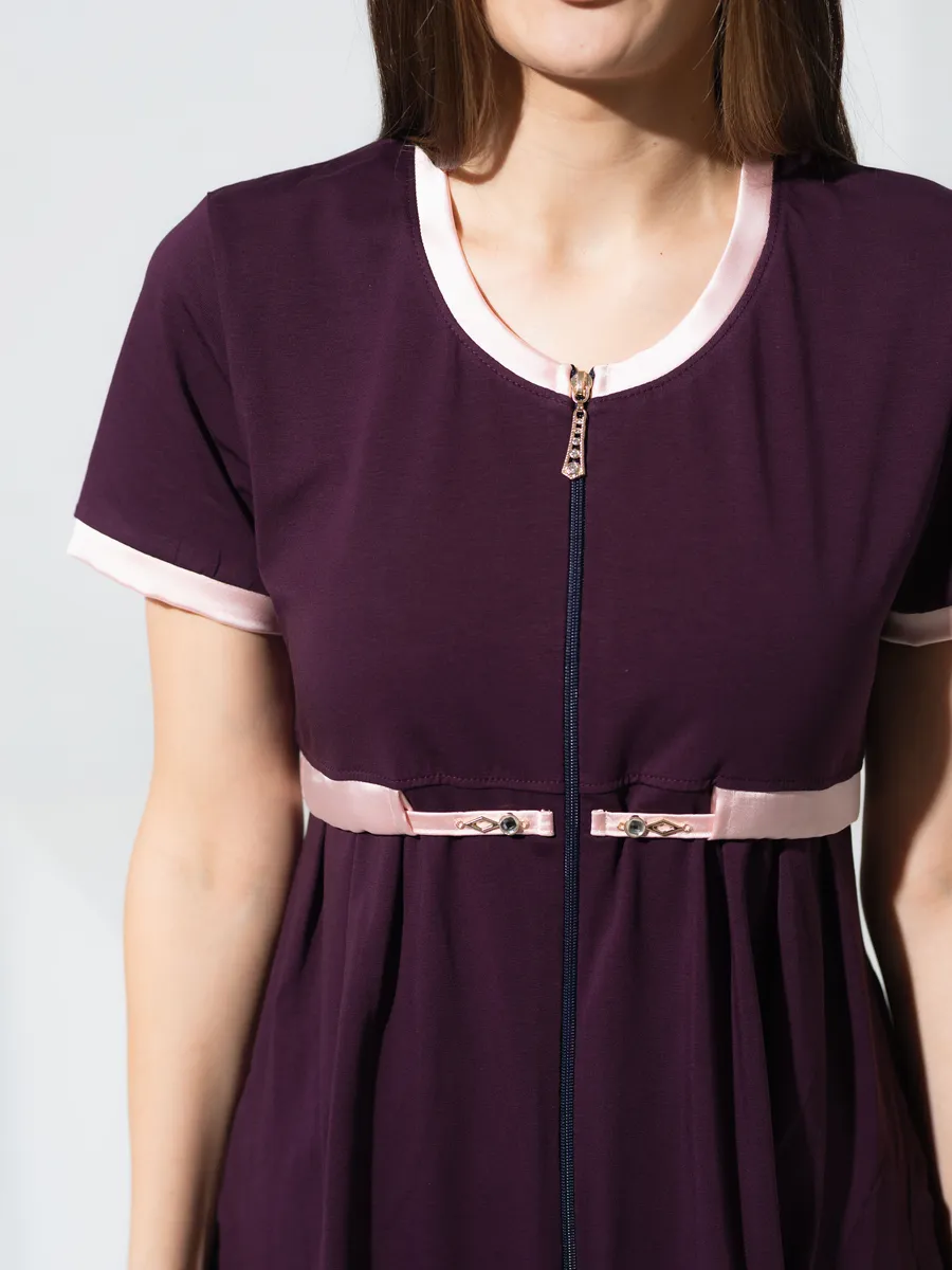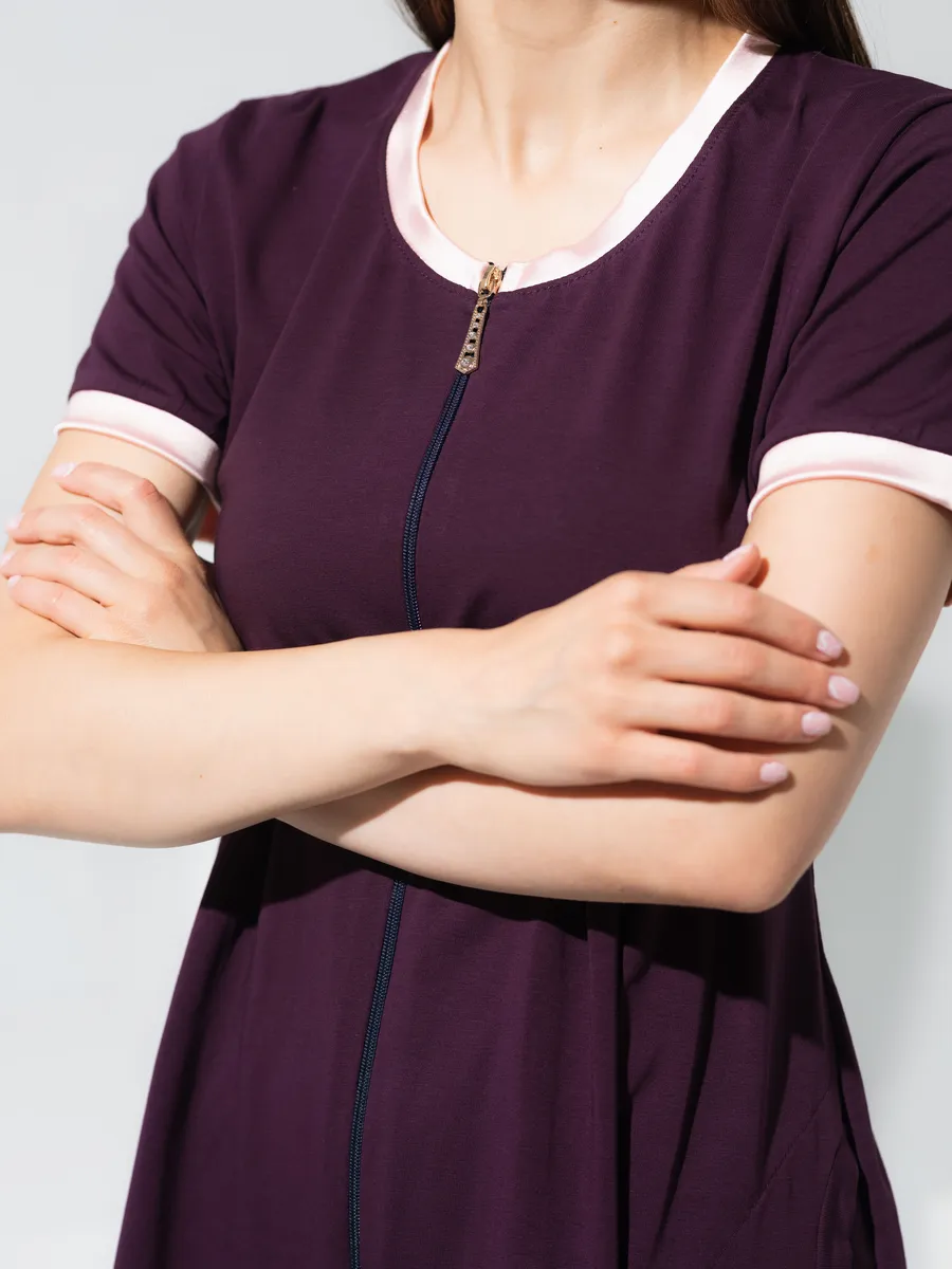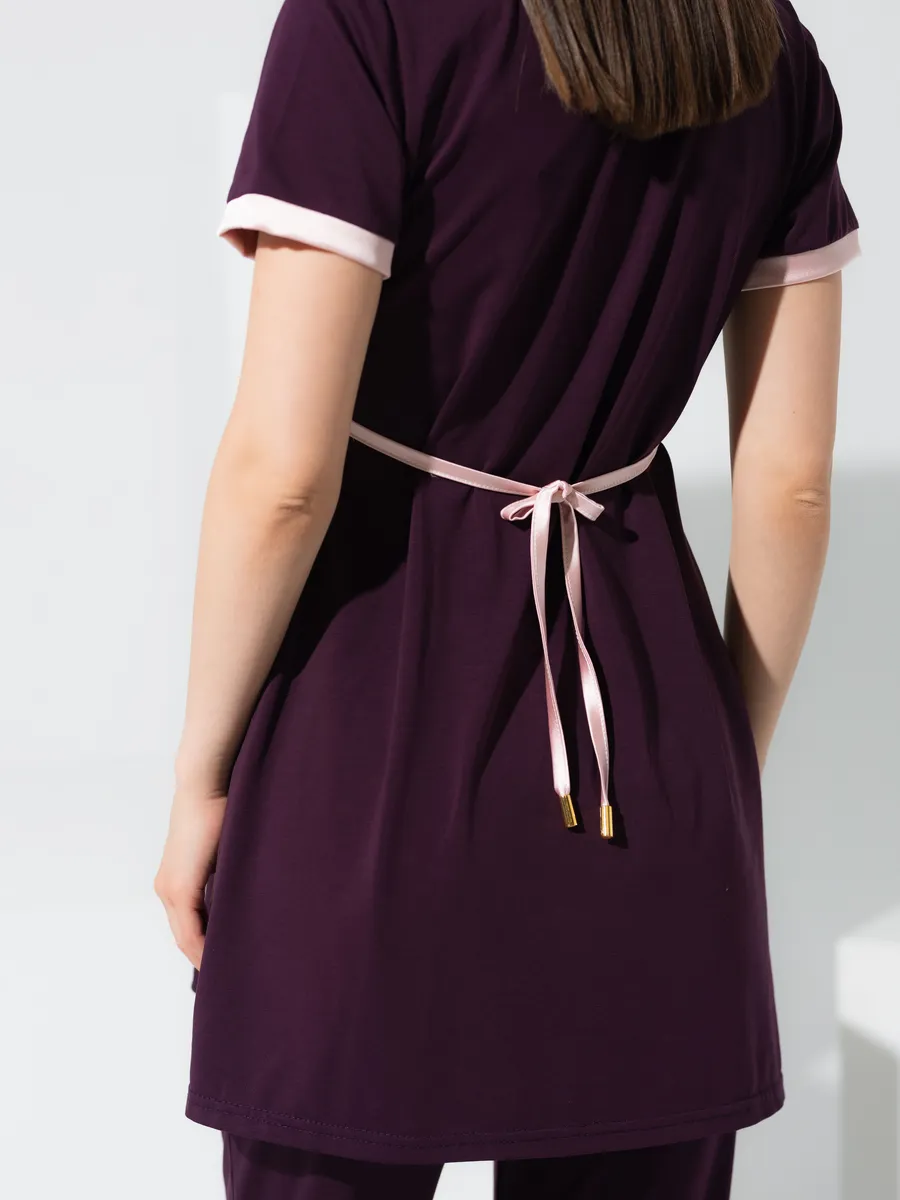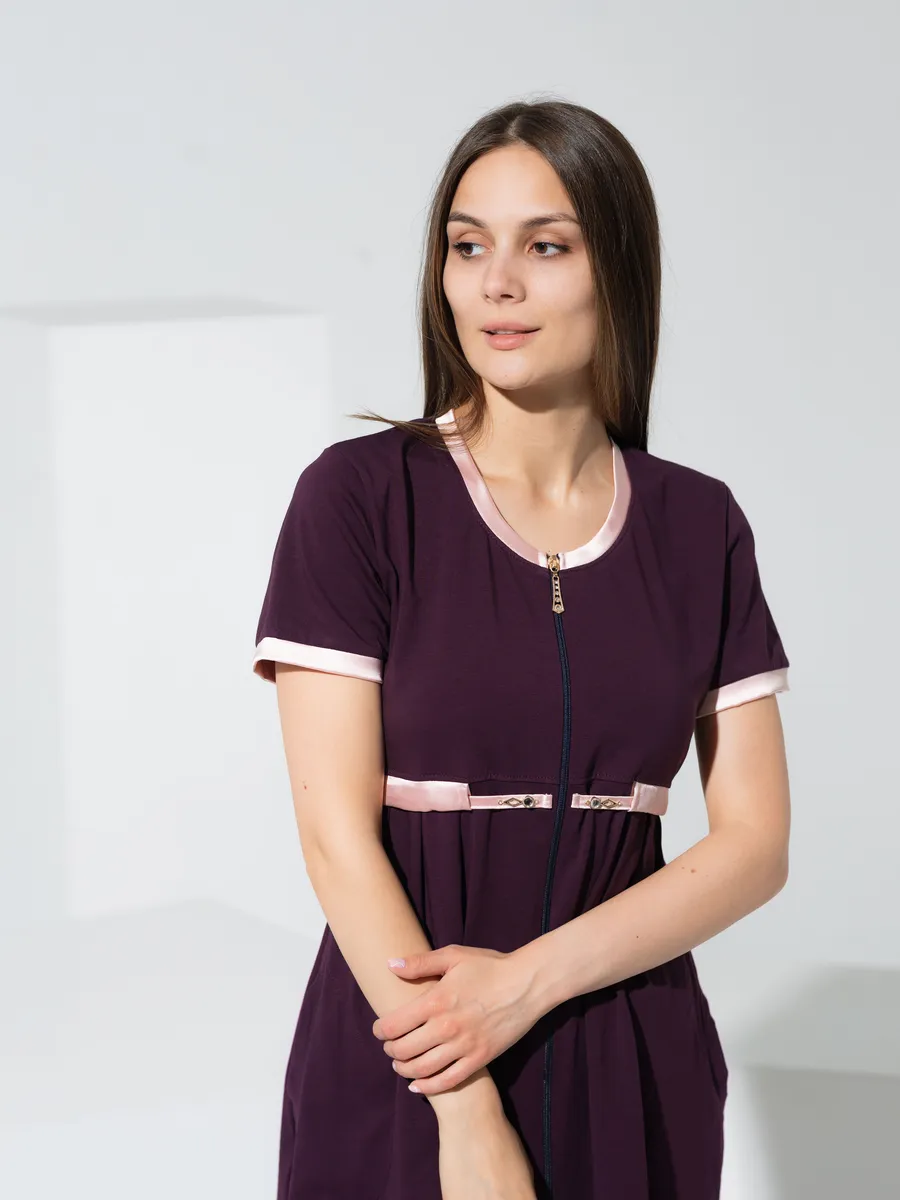 Туника с короткими рукавами и атласной отделкой, дополненная прямыми брюками с завязками сзади, создает элегантный и удобный образ. Туника с брюками позволит девушке дома и в больнице выглядеть женственно. Домашний костюм для роддома, для кормления позволяет будущей маме выглядеть стильно в любом месте.