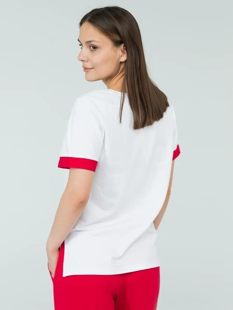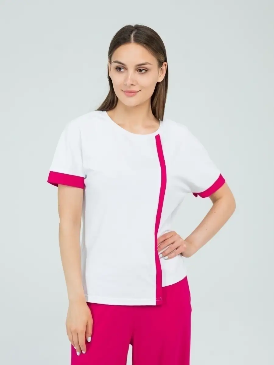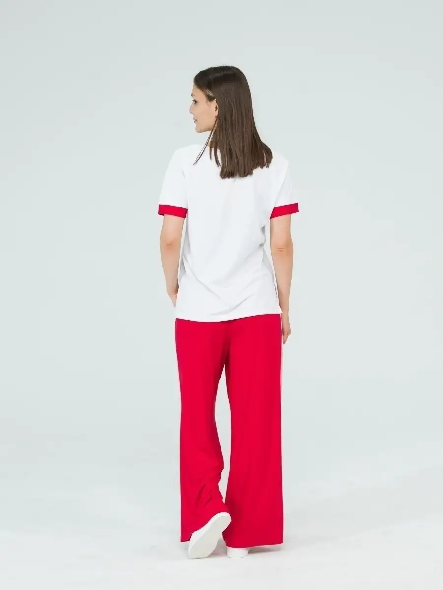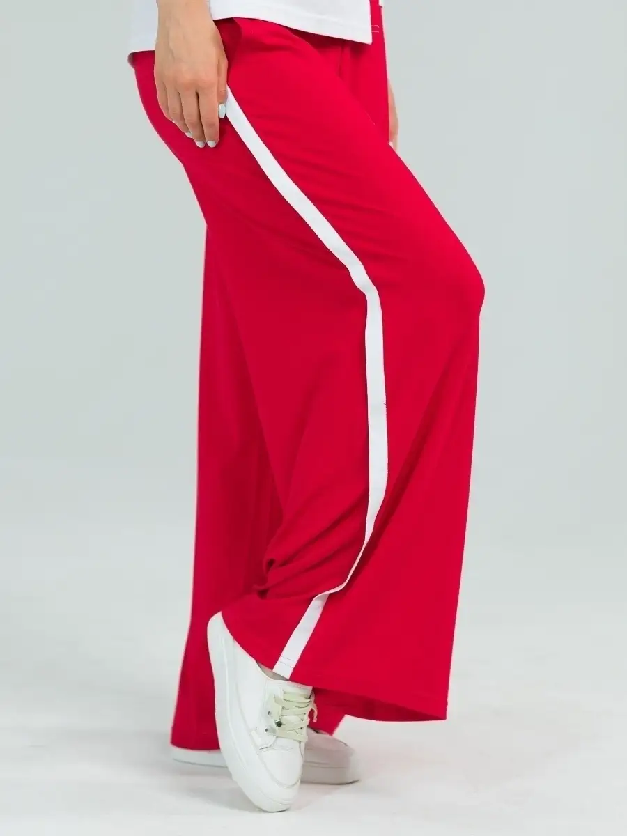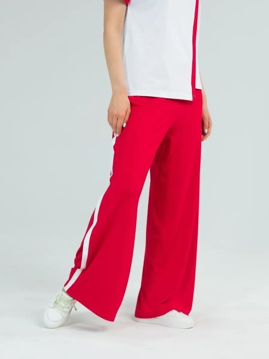 Летний стильный женский костюм. Костюм женский с широкими брюками поможет вам быть в тренде этого сезона. В комплект входят широкие брюки палаццо с глубокими карманами, и удлиненная футболка с боковыми разрезами. Брюки палаццо подходят для любого типа фигуры, скрывают ее недостатки и подчеркивают достоинства. Костюм из мягкой футболки со спущенным рукавом и широкими брюками прекрасно подойдет под лаконичный офисный стиль, для вечерних и повседневных образов, для прогулок и занятий спортом, а также в качестве костюма для дома. Костюм пошит из хлопковой ткани, и в нем будет комфортно даже в сильную жару. Не теряет форму после многочисленных стирок. Универсальный и практичный женский костюм прекрасно подойдет девушке, женщине, подростку для повседневных и вечерних прогулок, путешествий, отдыха на море, занятий спортом. Брюки палаццо на поясе из широкой эластичной резинки не сковывают движений, прекрасно сидят на любой фигуре, очень комфортны в носке, подойдет и для беременных.