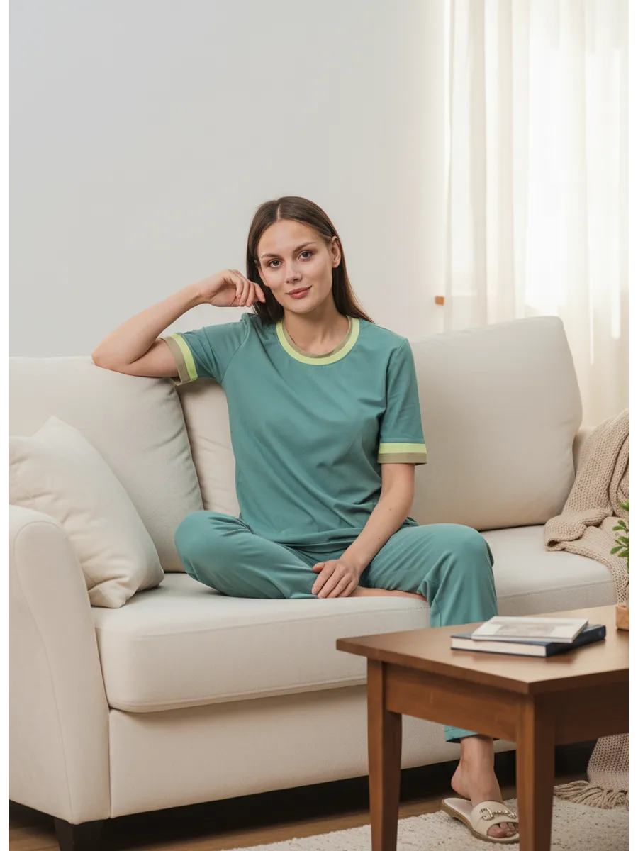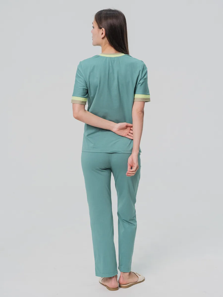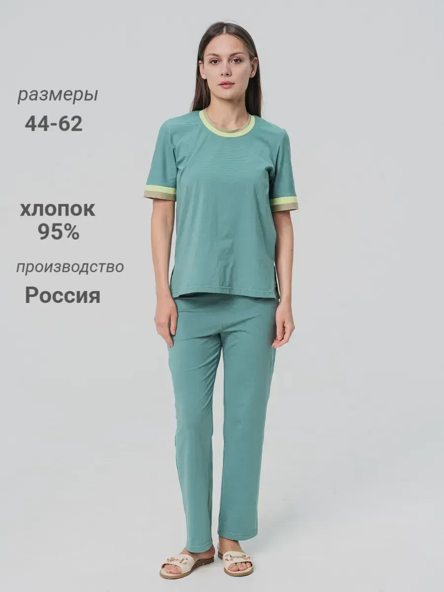 Пижама с брюками - это идеальный выбор для комфортного сна и отдыха. Сшита из мягкого и дышащего трикотажа из хлопка , она подарит вам ощущение нежности и легкости на коже. Комплект брючный можно носить и как домашняя одежда и для сна подойдет. Домашний костюм пригодится и на отдыхе, на даче. Трикотажная домашняя пижама идеально подходит для сна, повседневной носки или как домашняя одежда. Модель с короткими рукавами и брюками подойдет для женщин среднего и невысокого роста, а отсутствие карманов обеспечит дополнительный комфорт. Пижама со штанами подойдет как для повседневной носки, так и для пребывания в роддоме.