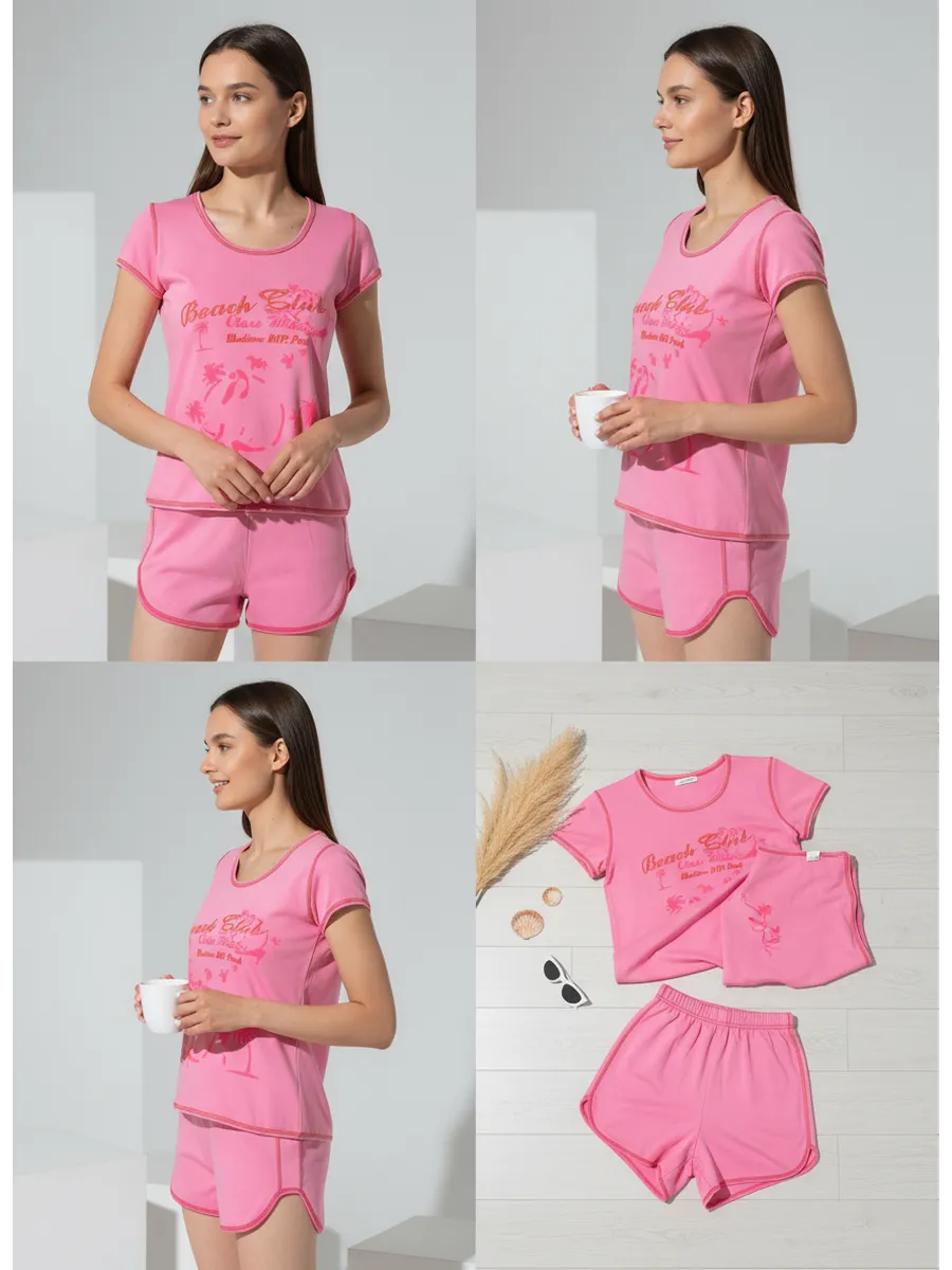 Пижама МАЛОМЕРИТ на 1 размер. Пижама женская - отличный выбор для комфортного сна и повседневной носки. Женская футболка с коротким рукавом декорирована красивым принтом, который сочетается с брюками. Шорты с поясом позволяют регулировать удобную посадку. Принт придаёт яркость пижамке. Костюм домашний женский сшит из материалов высокого качества, что обеспечивает мягкость и уют в любое время года. Футболка и шорты покроены из полотна высшего сорта с содержанием хлопка 100%. Ткани производства Турции, не линяют. Пижамка подойдёт на любой тип фигуры для девочек подростков, девушек, женщин. Сочетание шортов и футболки обеспечит полный комплект для вашего ночного отдыха. Благодаря теплому материалу, вы будете ощущать уют и комфорт даже в холодные зимние ночи. Она идеально подходит как для домашнего использования, так и для сна на отдыхе. Каждая пижама женская с шортами украшена стильными принтами, которые добавят вам шарм и уникальность. Эта женская пижама с футболкой и бриджами станет отличным подарком для вашей дочери, жены, любимой. Комплект пижамы в сочетании с ярким принтом-отличный подарок к любому празднику, на Новый год , день рождения, 8 марта.