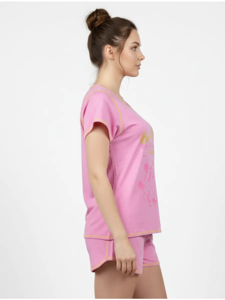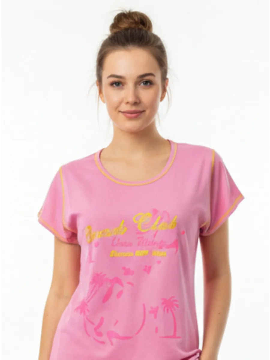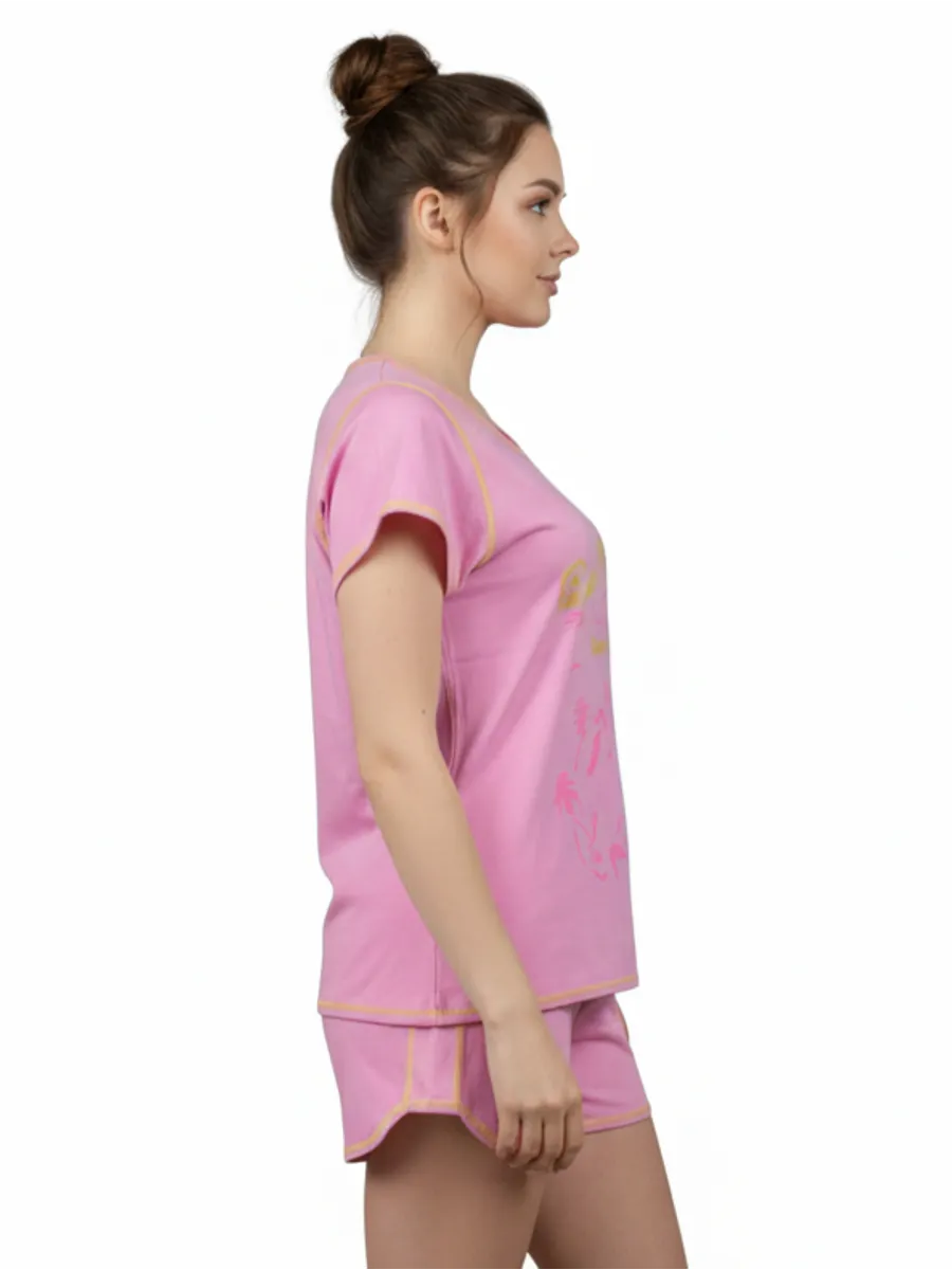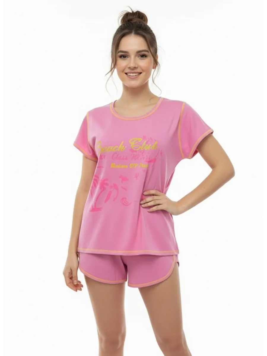 Пижама МАЛОМЕРИТ на 1 размер. Пижама женская - отличный выбор для комфортного сна и повседневной носки. Женская футболка с коротким рукавом декорирована красивым принтом, который сочетается с брюками. Шорты с поясом позволяют регулировать удобную посадку. Принт придаёт яркость пижамке. Костюм домашний женский сшит из материалов высокого качества, что обеспечивает мягкость и уют в любое время года. Футболка и шорты покроены из полотна высшего сорта с содержанием хлопка 100%. Ткани производства Турции, не линяют. Пижамка подойдёт на любой тип фигуры для девочек подростков, девушек, женщин. Сочетание шортов и футболки обеспечит полный комплект для вашего ночного отдыха. Благодаря теплому материалу, вы будете ощущать уют и комфорт даже в холодные зимние ночи. Она идеально подходит как для домашнего использования, так и для сна на отдыхе. Каждая пижама женская с шортами украшена стильными принтами, которые добавят вам шарм и уникальность. Эта женская пижама с футболкой и бриджами станет отличным подарком для вашей дочери, жены, любимой. Комплект пижамы в сочетании с ярким принтом-отличный подарок к любому празднику, на Новый год , день рождения, 8 марта.