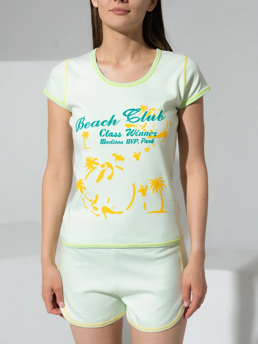 Пижама МАЛОМЕРИТ на 1 размер. Пижама женская - отличный выбор для комфортного сна и повседневной носки. Женская футболка с коротким рукавом декорирована красивым принтом, который сочетается с брюками. Шорты с поясом позволяют регулировать удобную посадку. Принт придаёт яркость пижамке. Костюм домашний женский сшит из материалов высокого качества, что обеспечивает мягкость и уют в любое время года. Футболка и шорты покроены из полотна высшего сорта с содержанием хлопка 100%. Ткани производства Турции, не линяют. Пижамка подойдёт на любой тип фигуры для девочек подростков, девушек, женщин. Сочетание шортов и футболки обеспечит полный комплект для вашего ночного отдыха. Благодаря теплому материалу, вы будете ощущать уют и комфорт даже в холодные зимние ночи. Она идеально подходит как для домашнего использования, так и для сна на отдыхе. Каждая пижама женская с шортами украшена стильными принтами, которые добавят вам шарм и уникальность. Эта женская пижама с футболкой и бриджами станет отличным подарком для вашей дочери, жены, любимой. Комплект пижамы в сочетании с ярким принтом-отличный подарок к любому празднику, на Новый год , день рождения, 8 марта.