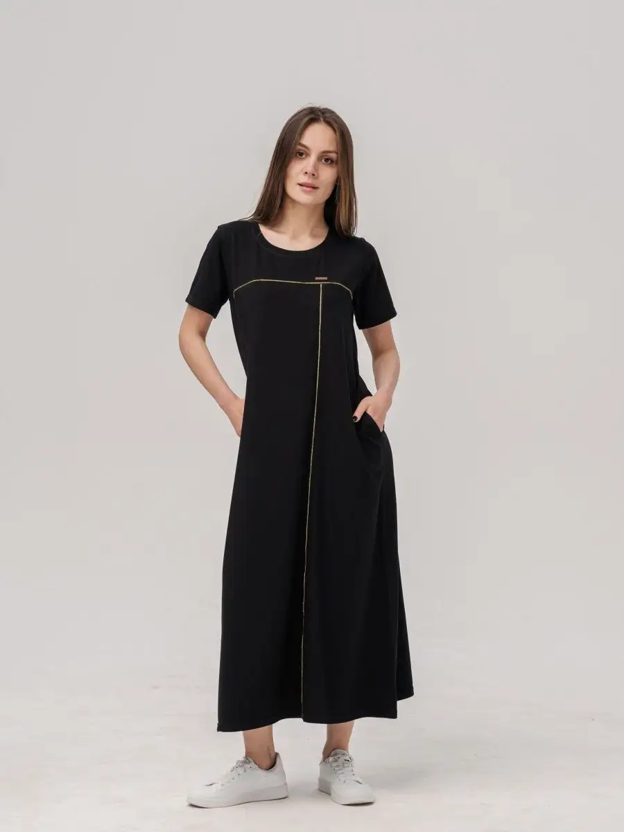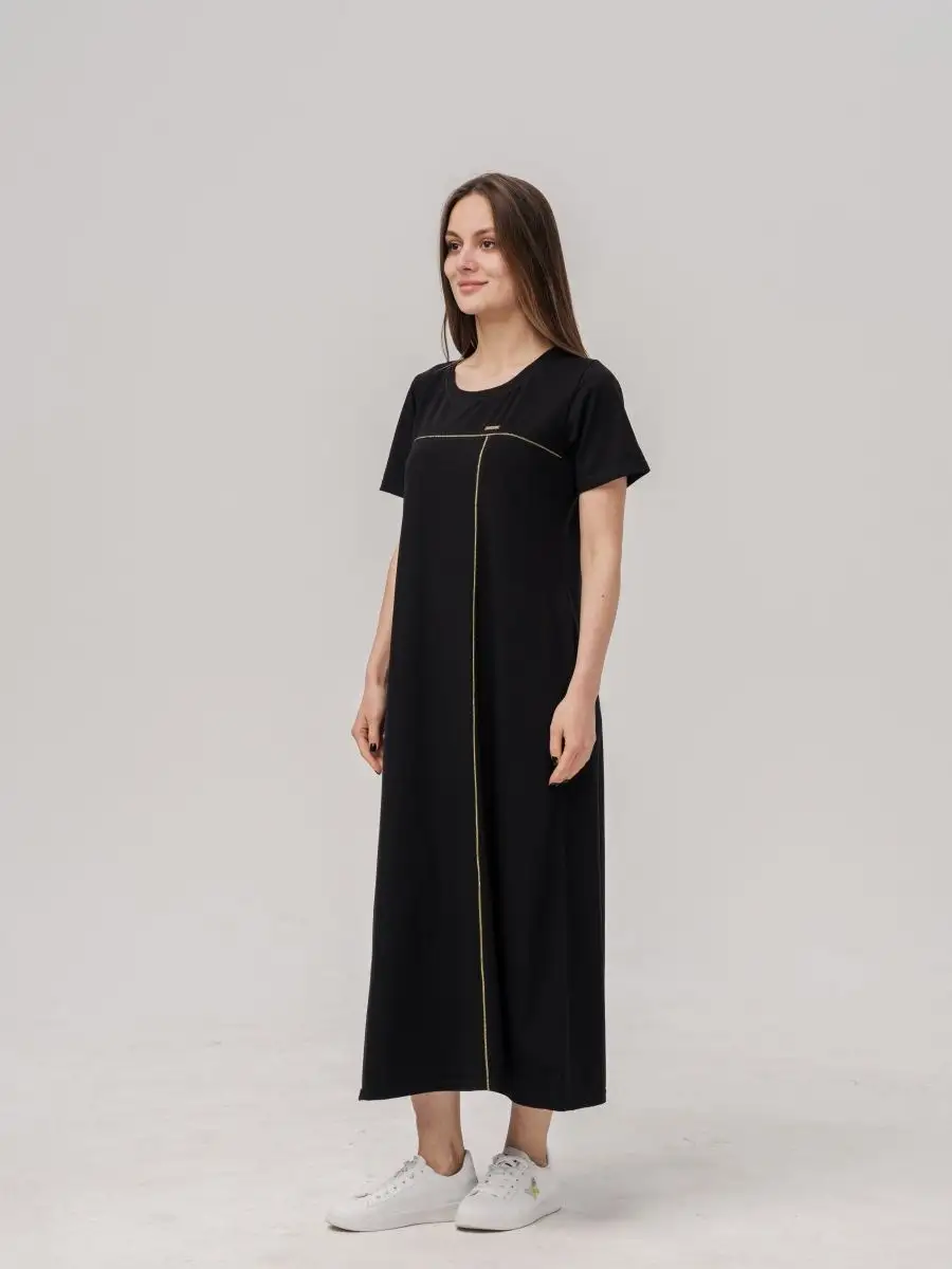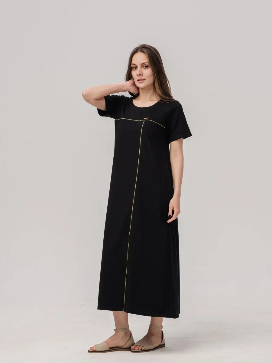 Трикотажное легкое платье свободного кроя на весну и лето! Эта модель трикотажного платья подойдет как девушкам, так и взрослым женщинам. Платье выполнено из натурального хлопка, чтобы Вы могли комфортно чувствовать себя на протяжении всего дня. Благодаря свободному крою это платье безупречно садится по фигуре, подчеркивая плавные линии. Длинное однотонное платье с круглой горловиной и коротким рукавом-это свободный и в то же время элегантный стиль. Базовое летнее платье трапеция позволяет комфортно носить его беременным девушкам и в послеродовой период. Повседневное и в то же время нарядное платье выполнено из очень приятной к телу мягкой ткани (95% хлопок и 5% эластан). Эта качественная ткань прекрасно пропускает воздух и комфортно носится в летний зной, не скатывается и долго не выцветает под воздействием солнца. Это чудесное стильное платье можно надеть на работу или учебу. В нем можно отправиться на прогулку по городу, поехать на пляж, в отпуск на фотосессию или на дачу. Комфортность хлопка позволяет рассмотреть это платье и как домашнее платье. Прямое трикотажное платье гармонично сочетается как с туфлями на каблуках, так и со спортивной обувью. Наденьте кеды или кроссовки и перед Вами стильный образ со спортивным платьем. Вы полюбите это платье и будете носить его с удовольствием!