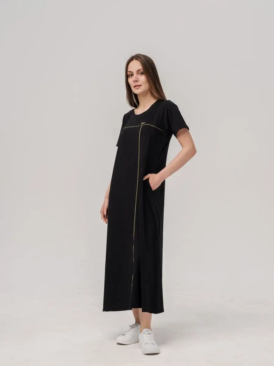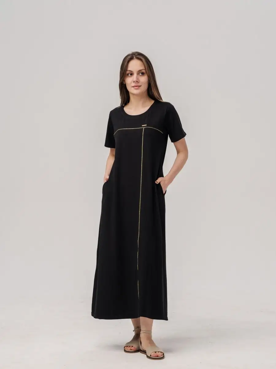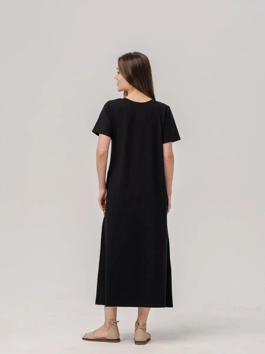 Трикотажное легкое платье свободного кроя на весну и лето! Эта модель трикотажного платья подойдет как девушкам, так и взрослым женщинам. Платье выполнено из натурального хлопка, чтобы Вы могли комфортно чувствовать себя на протяжении всего дня. Благодаря свободному крою это платье безупречно садится по фигуре, подчеркивая плавные линии. Длинное однотонное платье с круглой горловиной и коротким рукавом-это свободный и в то же время элегантный стиль. Базовое летнее платье трапеция позволяет комфортно носить его беременным девушкам и в послеродовой период. Повседневное и в то же время нарядное платье выполнено из очень приятной к телу мягкой ткани (95% хлопок и 5% эластан). Эта качественная ткань прекрасно пропускает воздух и комфортно носится в летний зной, не скатывается и долго не выцветает под воздействием солнца. Это чудесное стильное платье можно надеть на работу или учебу. В нем можно отправиться на прогулку по городу, поехать на пляж, в отпуск на фотосессию или на дачу. Комфортность хлопка позволяет рассмотреть это платье и как домашнее платье. Прямое трикотажное платье гармонично сочетается как с туфлями на каблуках, так и со спортивной обувью. Наденьте кеды или кроссовки и перед Вами стильный образ со спортивным платьем. Вы полюбите это платье и будете носить его с удовольствием!
