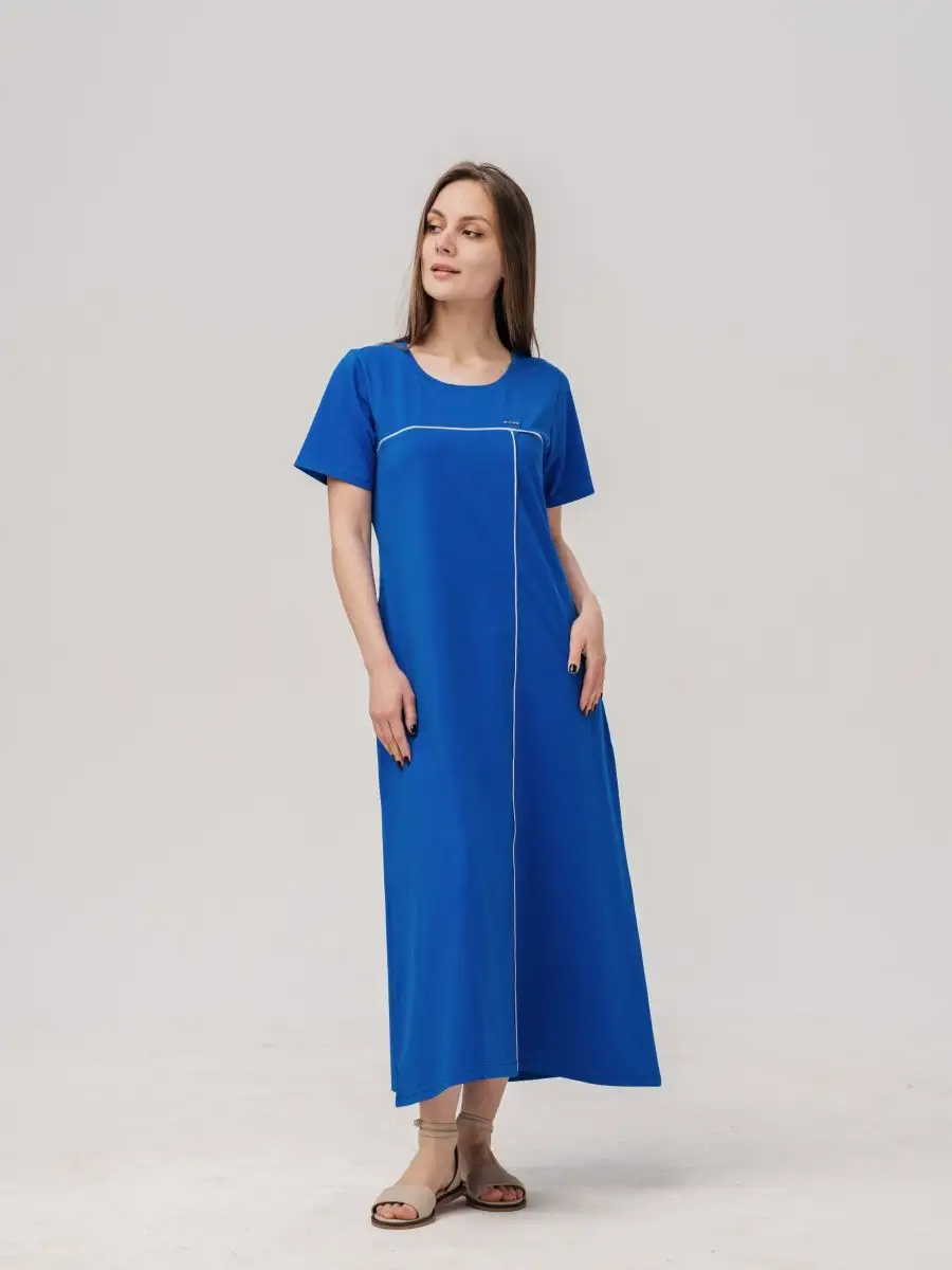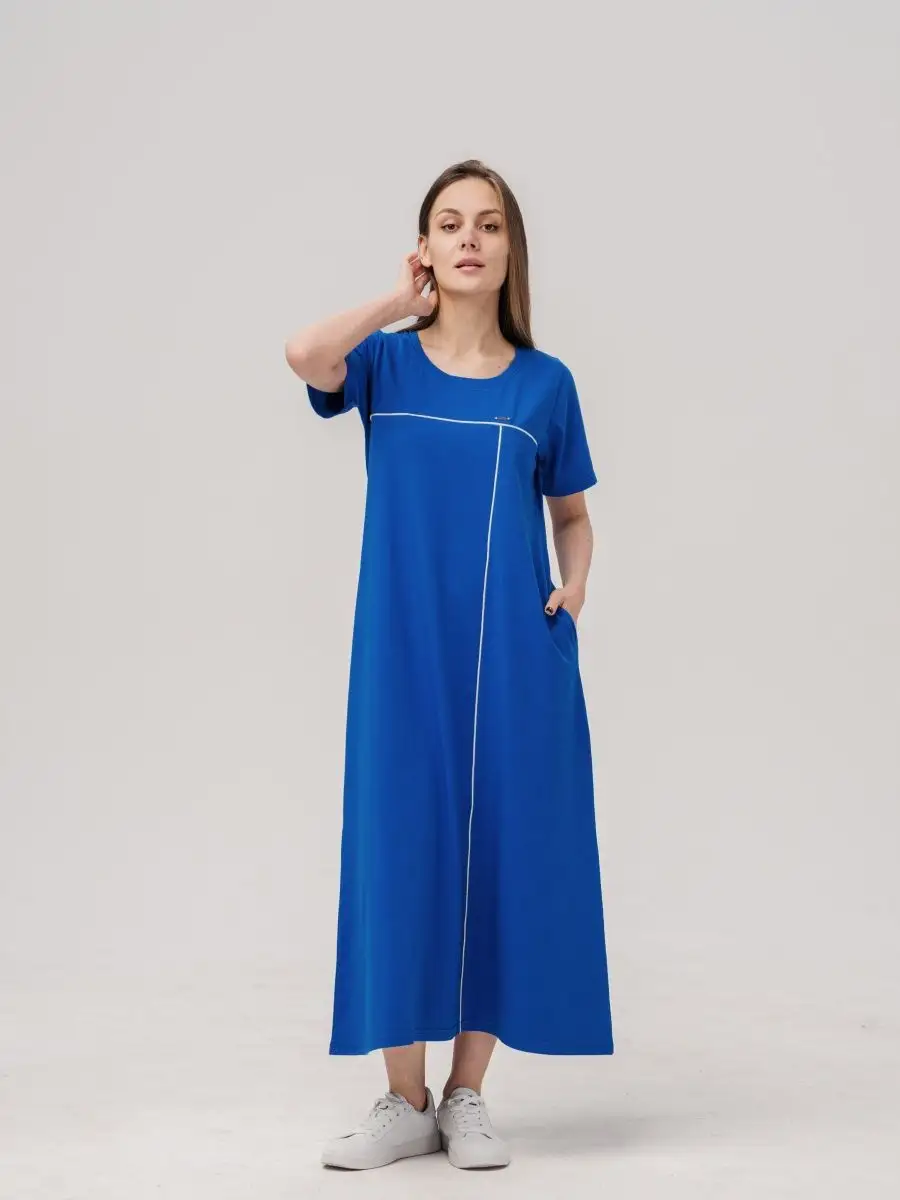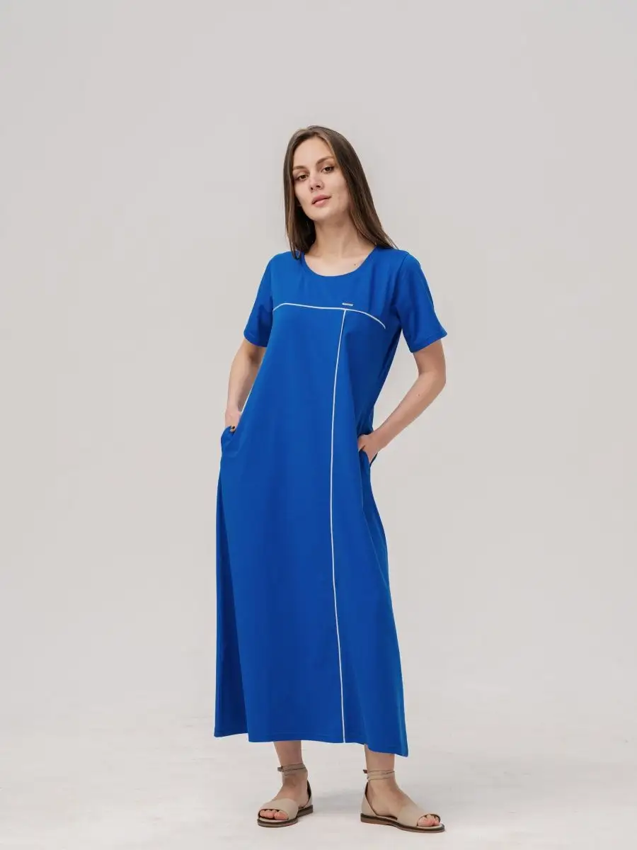 Трикотажное легкое платье свободного кроя на весну и лето! Эта модель трикотажного платья подойдет как девушкам, так и взрослым женщинам. Платье выполнено из натурального хлопка, чтобы Вы могли комфортно чувствовать себя на протяжении всего дня. Благодаря свободному крою это платье безупречно садится по фигуре, подчеркивая плавные линии. Длинное однотонное платье с круглой горловиной и коротким рукавом-это свободный и в то же время элегантный стиль. Базовое летнее платье трапеция позволяет комфортно носить его беременным девушкам и в послеродовой период. Повседневное и в то же время нарядное платье выполнено из очень приятной к телу мягкой ткани (95% хлопок и 5% эластан). Эта качественная ткань прекрасно пропускает воздух и комфортно носится в летний зной, не скатывается и долго не выцветает под воздействием солнца. Это чудесное стильное платье можно надеть на работу или учебу. В нем можно отправиться на прогулку по городу, поехать на пляж, в отпуск на фотосессию или на дачу. Комфортность хлопка позволяет рассмотреть это платье и как домашнее платье. Прямое трикотажное платье гармонично сочетается как с туфлями на каблуках, так и со спортивной обувью. Наденьте кеды или кроссовки и перед Вами стильный образ со спортивным платьем. Вы полюбите это платье и будете носить его с удовольствием!