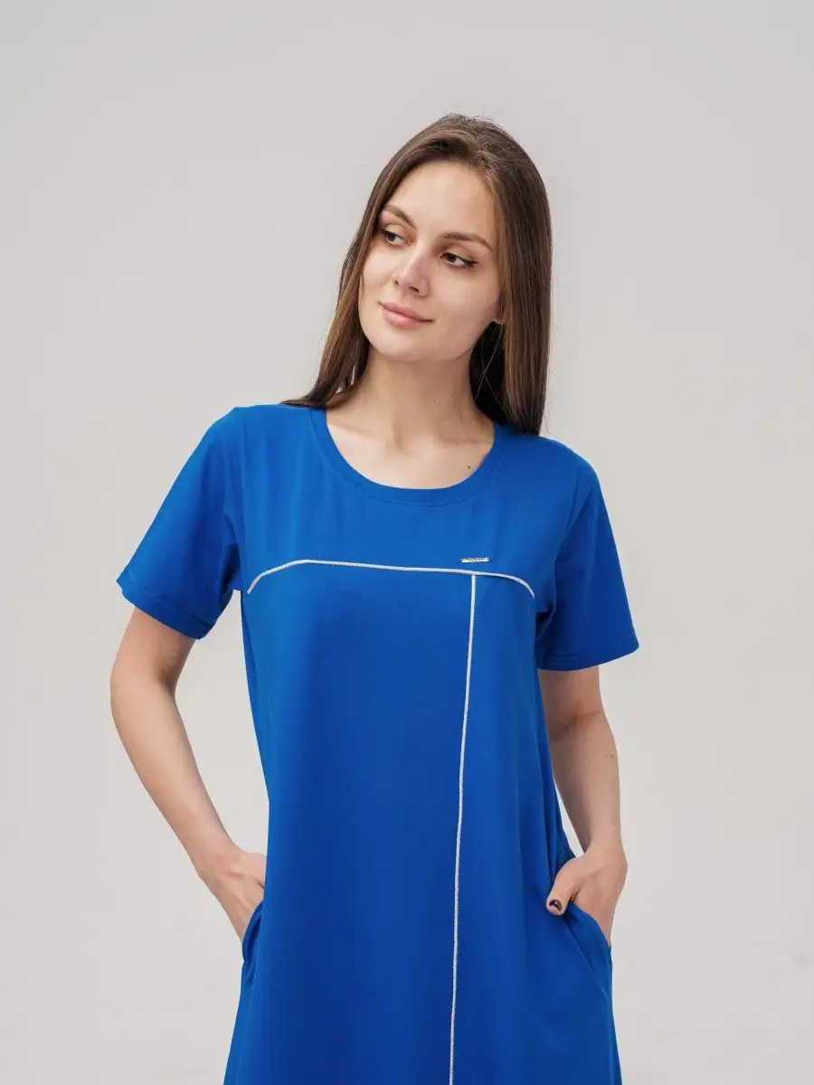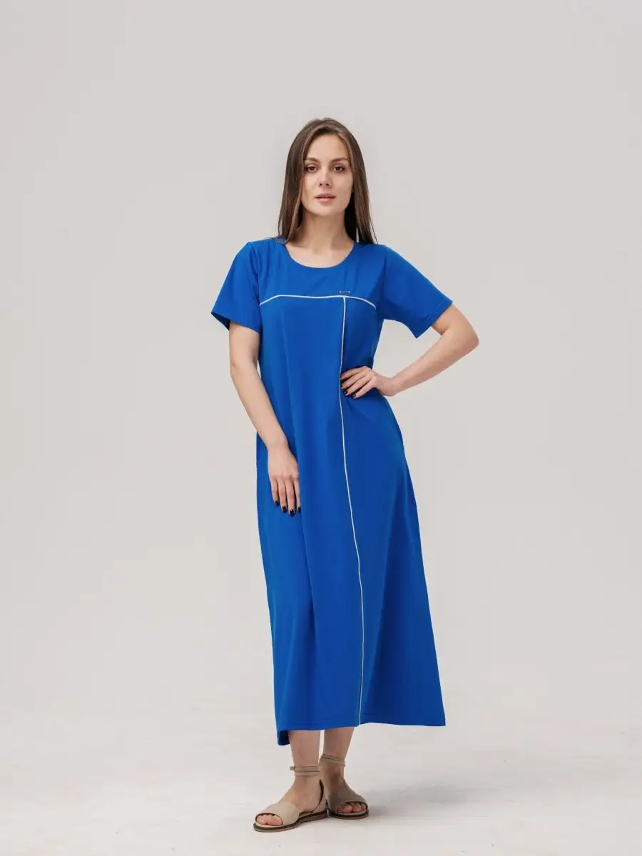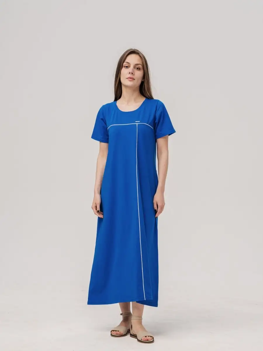 Трикотажное легкое платье свободного кроя на весну и лето! Эта модель трикотажного платья подойдет как девушкам, так и взрослым женщинам. Платье выполнено из натурального хлопка, чтобы Вы могли комфортно чувствовать себя на протяжении всего дня. Благодаря свободному крою это платье безупречно садится по фигуре, подчеркивая плавные линии. Длинное однотонное платье с круглой горловиной и коротким рукавом-это свободный и в то же время элегантный стиль. Базовое летнее платье трапеция позволяет комфортно носить его беременным девушкам и в послеродовой период. Повседневное и в то же время нарядное платье выполнено из очень приятной к телу мягкой ткани (95% хлопок и 5% эластан). Эта качественная ткань прекрасно пропускает воздух и комфортно носится в летний зной, не скатывается и долго не выцветает под воздействием солнца. Это чудесное стильное платье можно надеть на работу или учебу. В нем можно отправиться на прогулку по городу, поехать на пляж, в отпуск на фотосессию или на дачу. Комфортность хлопка позволяет рассмотреть это платье и как домашнее платье. Прямое трикотажное платье гармонично сочетается как с туфлями на каблуках, так и со спортивной обувью. Наденьте кеды или кроссовки и перед Вами стильный образ со спортивным платьем. Вы полюбите это платье и будете носить его с удовольствием!