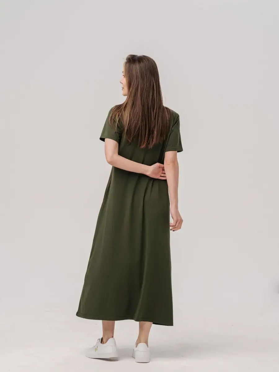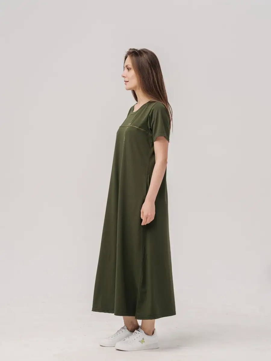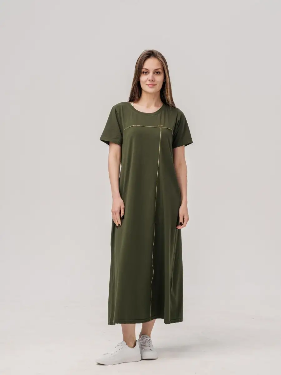 Трикотажное легкое платье свободного кроя на весну и лето! Эта модель трикотажного платья подойдет как девушкам, так и взрослым женщинам. Платье выполнено из натурального хлопка, чтобы Вы могли комфортно чувствовать себя на протяжении всего дня. Благодаря свободному крою это платье безупречно садится по фигуре, подчеркивая плавные линии. Длинное однотонное платье с круглой горловиной и коротким рукавом-это свободный и в то же время элегантный стиль. Базовое летнее платье трапеция позволяет комфортно носить его беременным девушкам и в послеродовой период. Повседневное и в то же время нарядное платье выполнено из очень приятной к телу мягкой ткани (95% хлопок и 5% эластан). Эта качественная ткань прекрасно пропускает воздух и комфортно носится в летний зной, не скатывается и долго не выцветает под воздействием солнца. Это чудесное стильное платье можно надеть на работу или учебу. В нем можно отправиться на прогулку по городу, поехать на пляж, в отпуск на фотосессию или на дачу. Комфортность хлопка позволяет рассмотреть это платье и как домашнее платье. Прямое трикотажное платье гармонично сочетается как с туфлями на каблуках, так и со спортивной обувью. Наденьте кеды или кроссовки и перед Вами стильный образ со спортивным платьем. Вы полюбите это платье и будете носить его с удовольствием!