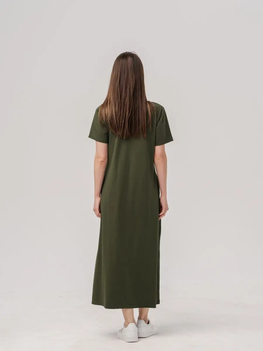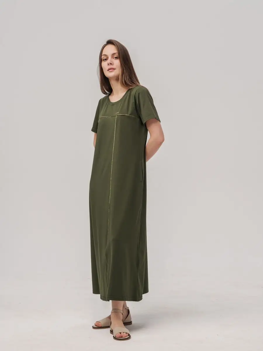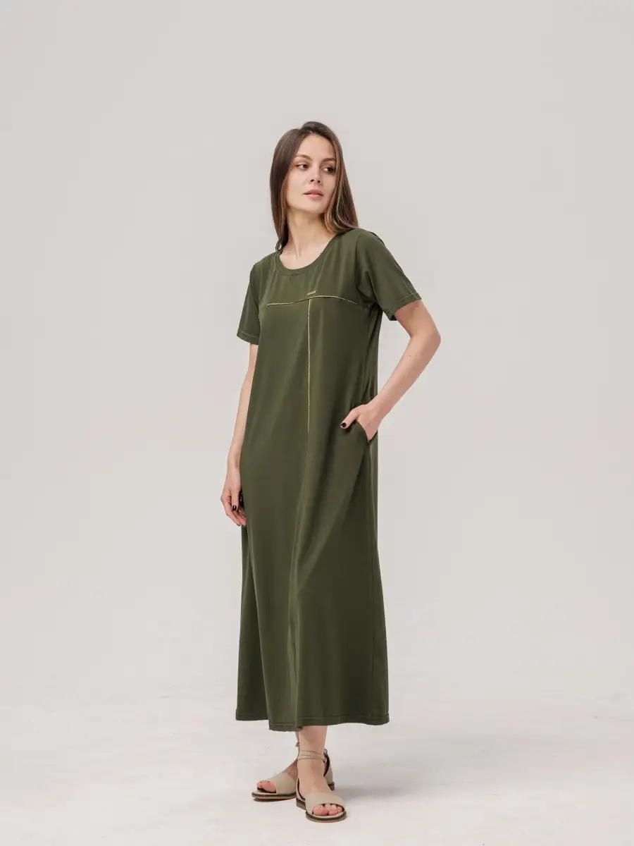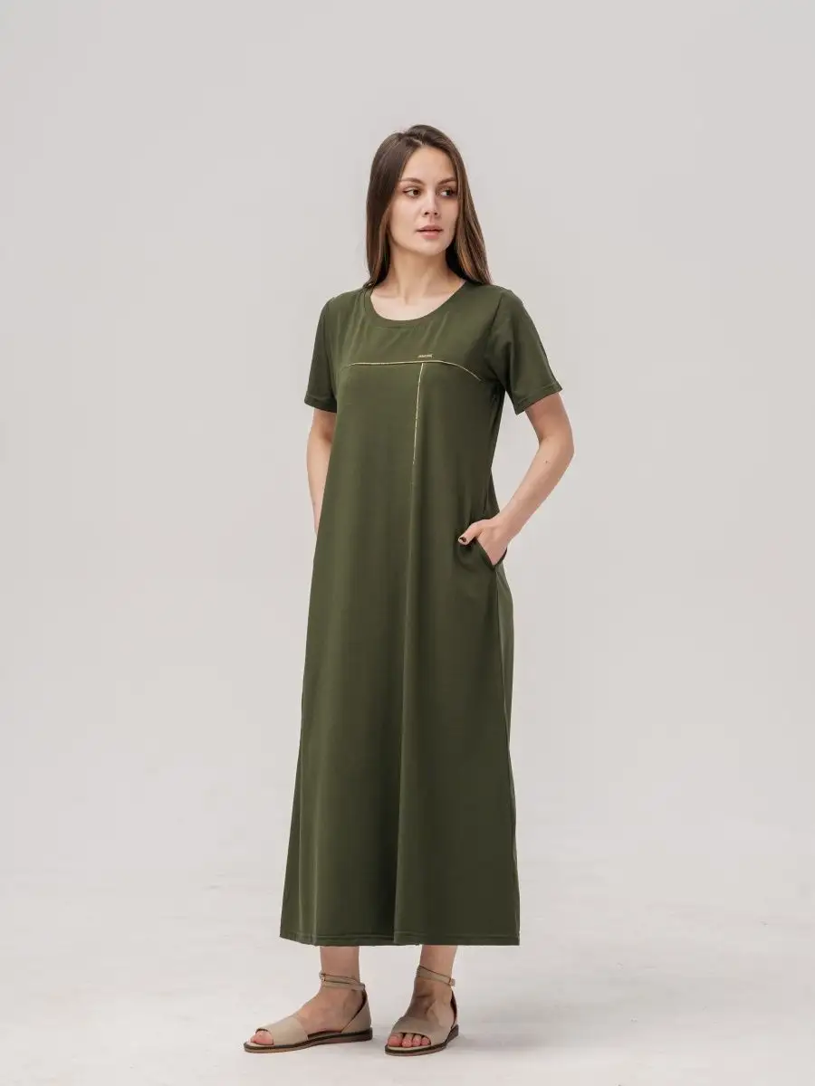 Трикотажное легкое платье свободного кроя на весну и лето! Эта модель трикотажного платья подойдет как девушкам, так и взрослым женщинам. Платье выполнено из натурального хлопка, чтобы Вы могли комфортно чувствовать себя на протяжении всего дня. Благодаря свободному крою это платье безупречно садится по фигуре, подчеркивая плавные линии. Длинное однотонное платье с круглой горловиной и коротким рукавом-это свободный и в то же время элегантный стиль. Базовое летнее платье трапеция позволяет комфортно носить его беременным девушкам и в послеродовой период. Повседневное и в то же время нарядное платье выполнено из очень приятной к телу мягкой ткани (95% хлопок и 5% эластан). Эта качественная ткань прекрасно пропускает воздух и комфортно носится в летний зной, не скатывается и долго не выцветает под воздействием солнца. Это чудесное стильное платье можно надеть на работу или учебу. В нем можно отправиться на прогулку по городу, поехать на пляж, в отпуск на фотосессию или на дачу. Комфортность хлопка позволяет рассмотреть это платье и как домашнее платье. Прямое трикотажное платье гармонично сочетается как с туфлями на каблуках, так и со спортивной обувью. Наденьте кеды или кроссовки и перед Вами стильный образ со спортивным платьем. Вы полюбите это платье и будете носить его с удовольствием!