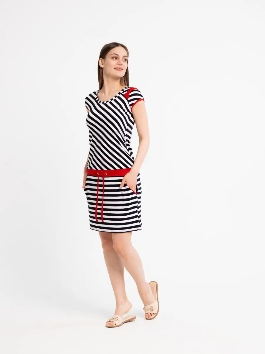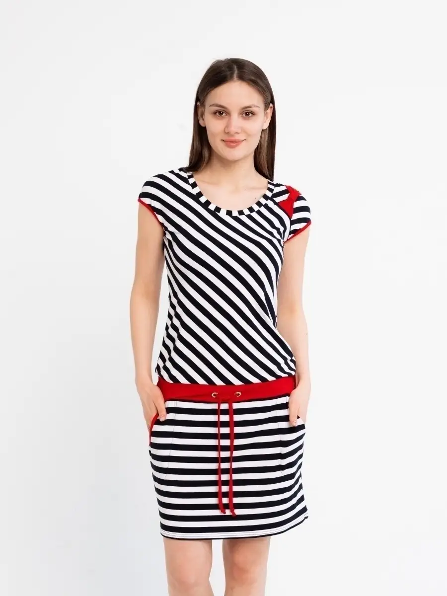 Молодежное стильное женское платье на каждый день. Прекрасно подойдет для отдыха, прогулок в летнее время, на море, для пляжа. Платье-туника с коротким рукавом идеально сидит. Можно носить как тунику, чуть приподняв пояс на резинке к талии. Можно комбинировать тунику с легинсами, лосинами. Опустив пояс на бедра получается интересное платье. В составе содержится вискоза, поэтому платье очень приятное к телу. Платье скрывает небольшой животик, подходит для беременных на ранних сроках. Платье подойдет как девочкам подросткам, так и девушкам, женщинам.