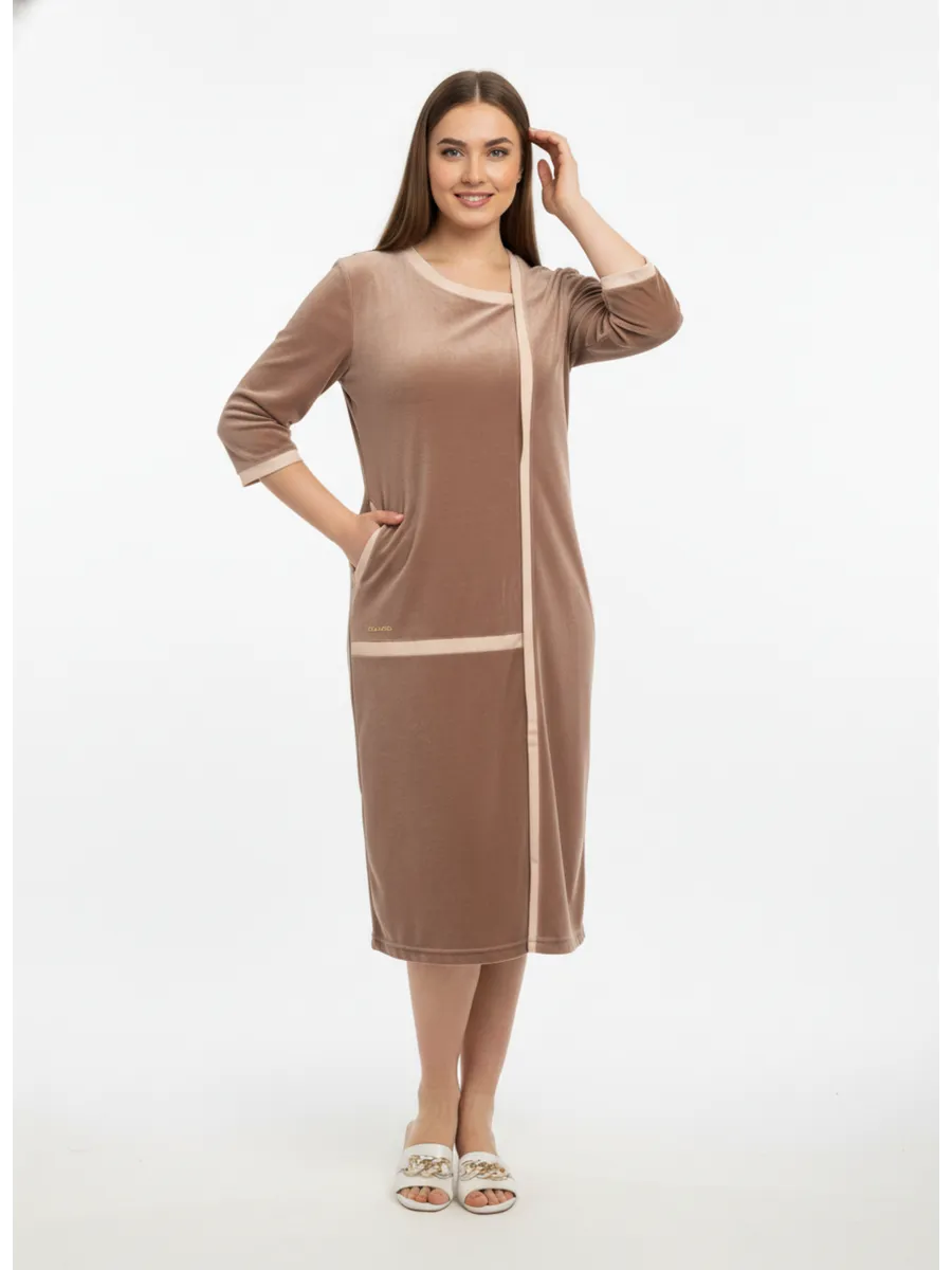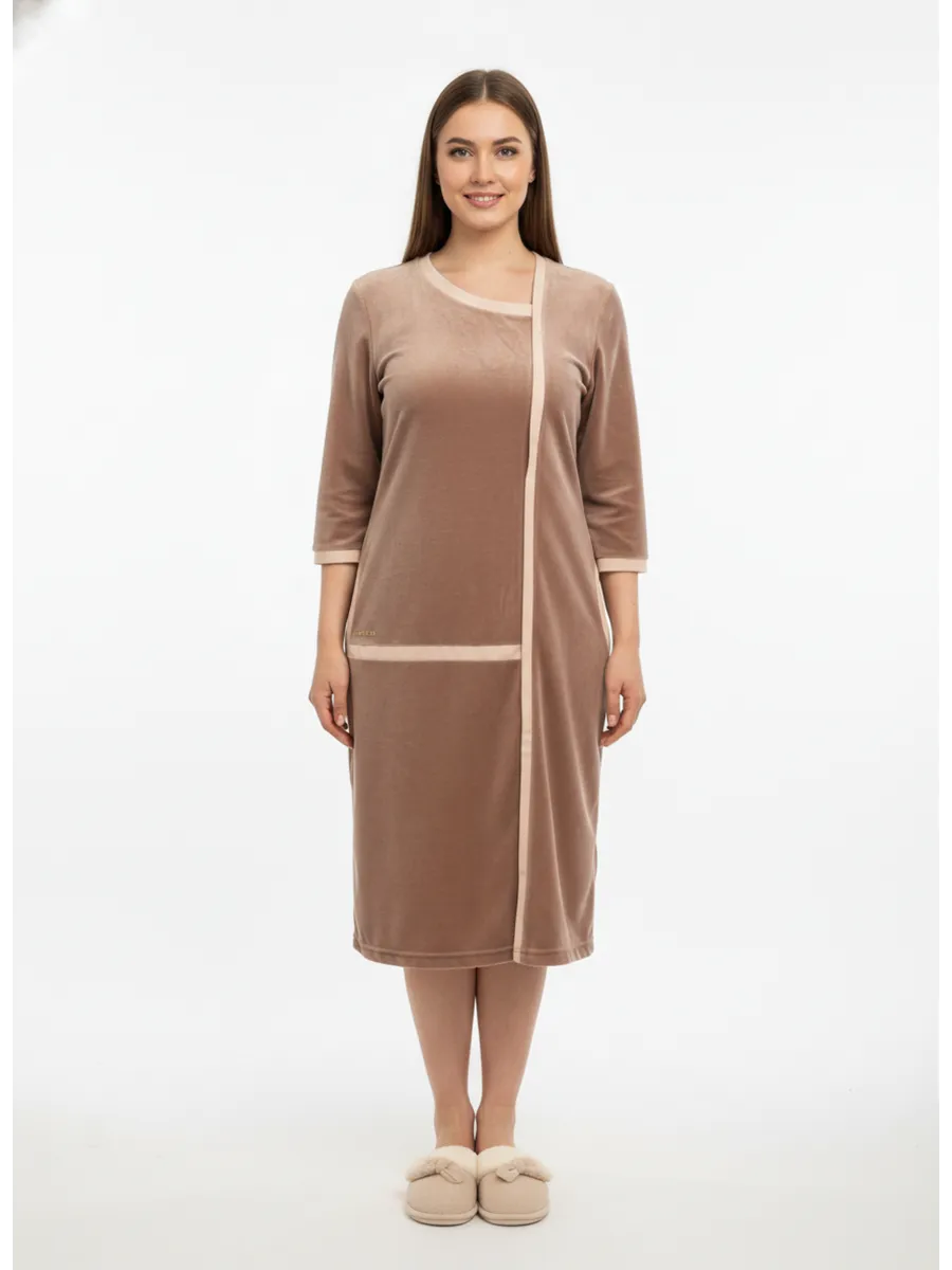 Особенность модели – замок и большие карманы, которые обеспечивают удобство и функциональность, а также возможность хранить мелочи под рукой. Молния прикрыта планкой и халат выглядит как платье. Халат подойдет для кормящих женщин и беременных, обеспечивая комфорт и легкость в использовании. Халат сшит из велюра высшего сорта производства Турция, с высоким содержанием хлопка, стойкий к износу, не линяет. Изделие сочетает в себе долговечность и стиль, соответствующий самым популярным трендам 2025 и 2026 годов.